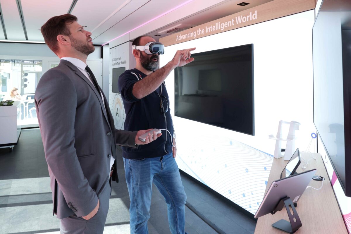 ami jelentős terhelést jelent, méghozzá az igény a nagysebességű, alacsony késleltetésű és megbízható kapcsolatra ma már alapvető mindenki számára, így az új megoldások fókuszában a gyors fel-, és letöltés, az energiahatékonyság és a pontos helymeghatározás áll. A Huawei kiállítóterében kipróbálhattuk a Vision Pro VR-szemüveget és láthattunk holografikus, a képet háromdimenzióban megjelenítő kijelzőt is: mindkét típusú eszköz és általában az immerzív technológiák sokat profitálhatnak a növelt sebességű hálózati kapcsolatból, ami különösen akkor játszik fontos szerepet, ha az eszközöket nem csak szórakozásra, hanem gyártási, mérnöki vagy orvosi munkára használják. Az 5.5G kevesebb mint 5ms-os késleltetést hoz elérhető közelségbe, ami többek között az autonóm járművek infrastruktúrájában lényeges összetevő, de az ipari környezetben sem elhanyagolható szempont, figyelembe véve, hogy az automatizálás és robotizáció az Ipar 4.0 szerves részét alkotja.