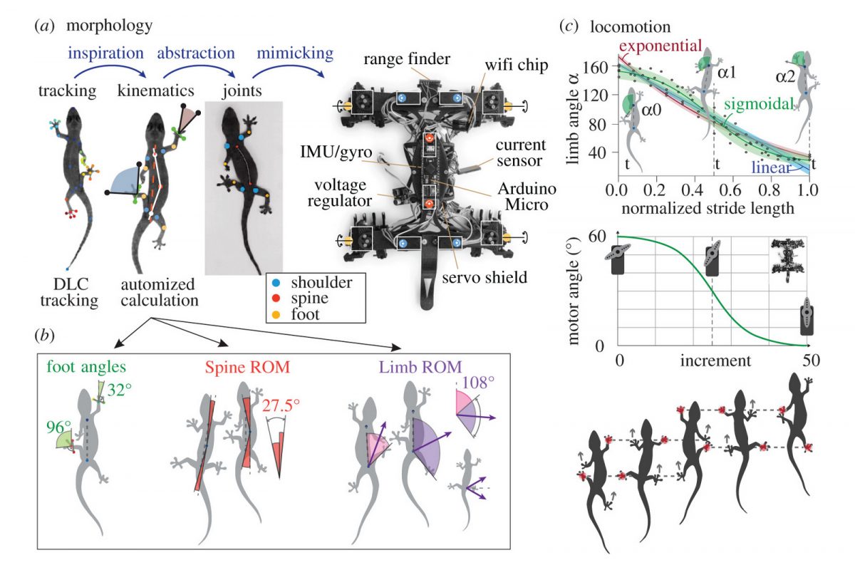 Az X-4 nevű robot vezető fejlesztője, Johanna Schulz PhD-hallgató négy éven át vizsgálta, elemezte és számos prototípus-generáció építésével modellezte a gyíkok mozgását. A jelenlegi robotba beépített megfigyelési eredmények egyik legérdekesebbike a gyíkok lábtartásának meghatározott szöge. Az első lábak a haladási irányhoz képest jellemzően 20, a hátsók 100 fokos szögben állnak. Ezek az értékek meglepő módon azonosak a karmos lábakkal kapaszkodó gyíkfélék vagy a tapadós lábujjú gekkók esetében.