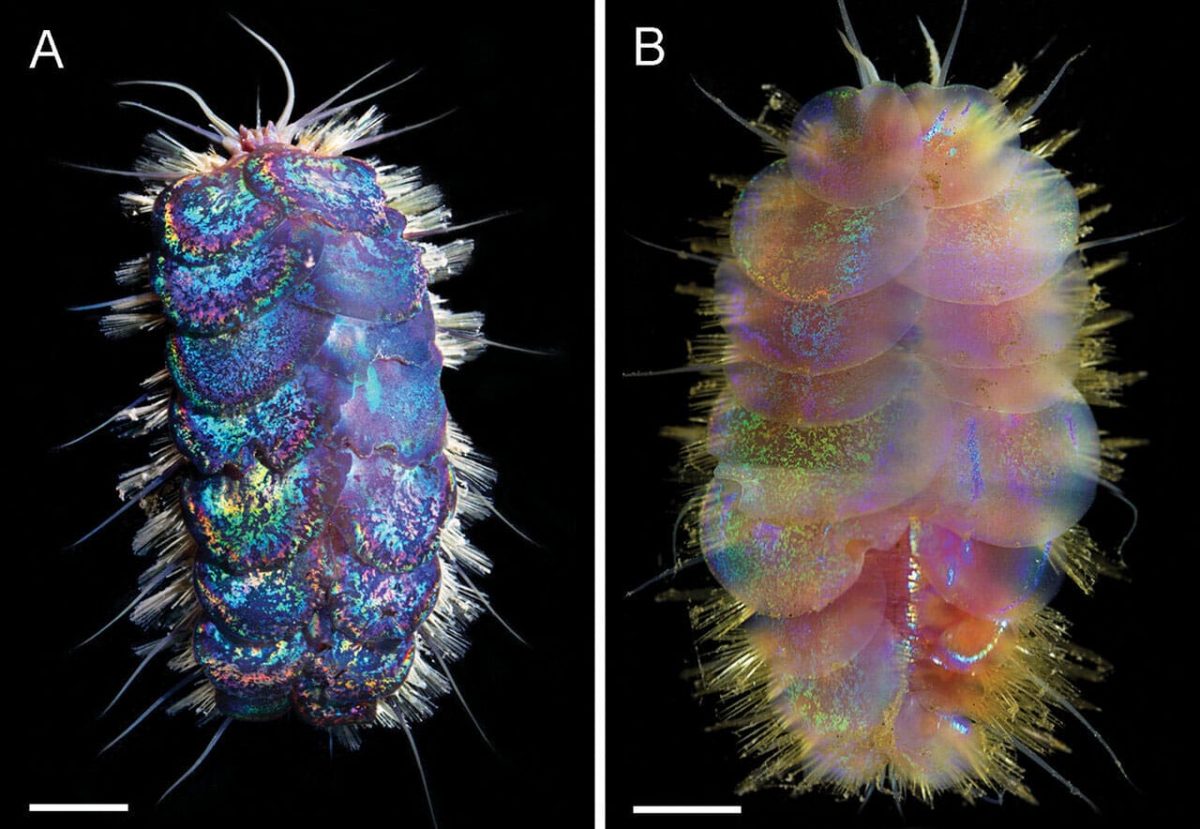 A tudósok egy távvezérlésű járművel gyűjtötték be az egyes fajok egyedeinek mintáit az óceán fenekéről. Ez lehetővé tette számukra laboratóriumban is tanulmányozzák a fajokat, ahol fel is tűnt nekik egy ellentmondás. A férgek olyan mély vízben élnek, ahová már ne, hatol le a fény, így lakó- és fajtársaik, a többi élőlény amelyek megosztják velük az élőhelyüket, nem is képesek látni fényes, lila, kék és rózsaszín irizáló héjukat, és persze igazándiból egymást sem, hiszen nincs is szemük.