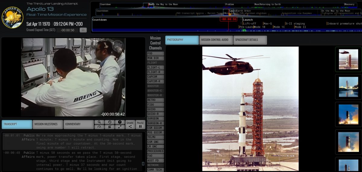 Az amerikai űrügynökség nem aprózta el a dolgot: a kifejezetten erre az alkalomra készült honlapon a "Now" gombra kattintva valós időben hallhatjuk az összes kommunikációt a legénység és a földi irányítás között, láthatjuk a korabeli felvételeket, és nagyjából minden információt, ami a küldetésről rendelkezésre áll. Amikor ezt írjuk, a kilövés óta majdnem négy óra telt el, tehát ha valaki csak a szállóigévé vált "Houston, volt egy kis problémánk" mondatra vár, annak érdemes kicsit előre ugrania az időben. Ezt könnyen megtehetjük, csak írjuk be a Ground Elapsed Time-hoz a bal felső sarokban, hogy 55:55:20, és máris hallhatjuk, ahogy Jack Swigert száját elhagyják a híressé vált szavak. Ha valaki az elejétől szeretné nézni az egész küldetést, arra is van lehetőség, ha a nyitóoldalon nem a "Now" gombra, hanem a felette látható "T Minus 1M"-re kattintunk.