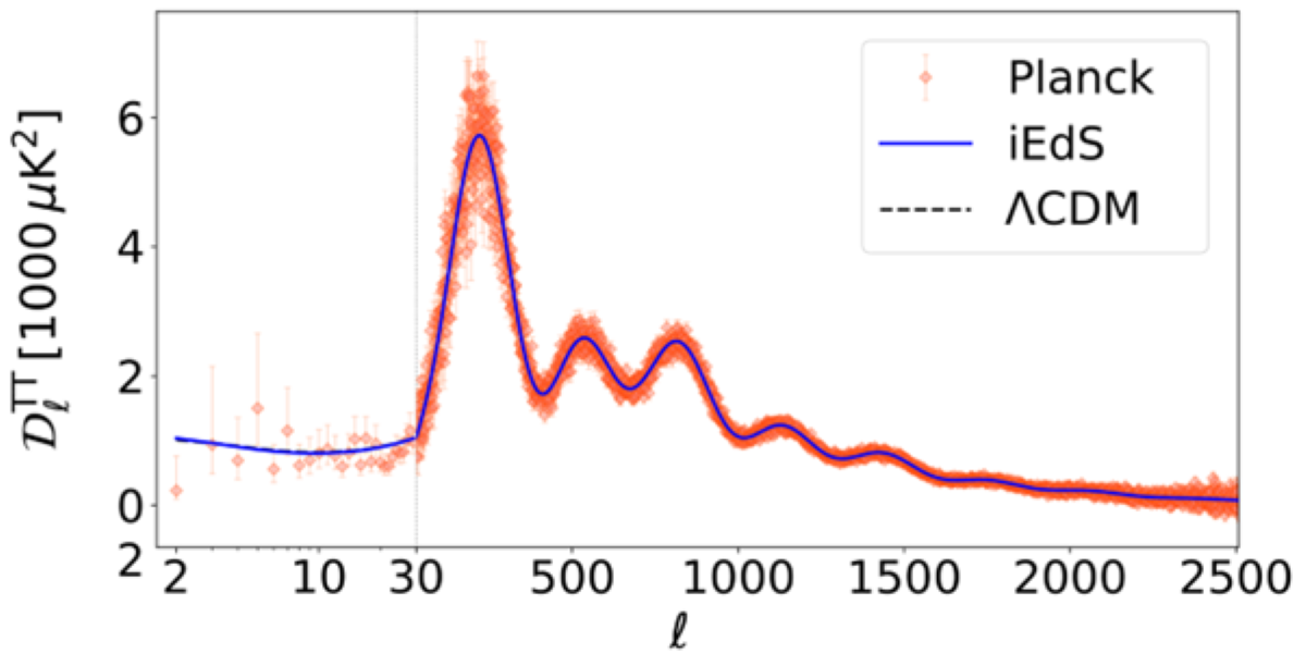 Az iEdS-univerzum kozmológiai modellje összhangban áll a megfigyelésekkel, a tágulás korai, még globálisan is homogén szakaszában azonos folyamatokat feltételez, mint a Lambda-CDM modell. Az új modellben ezért a kozmikus mikrohullámú sugárzás és a könnyű kémiai elemek keletkezése - és feltéve, hogy megtörtént, úgy a kozmikus infláció is - a már ismert módokon zajlik. Az iEdS modell fontos jellemzője ezenfelül, hogy bizonyos, az univerzum szerkezetével és tágulásával összefüggő jelenségeket, például a kozmikus háttérsugárzást, a barionakusztikus oszcillációkat és az Ia típusú szupernóvákat, a Hubble-feszültség nélkül képes megmagyarázni.