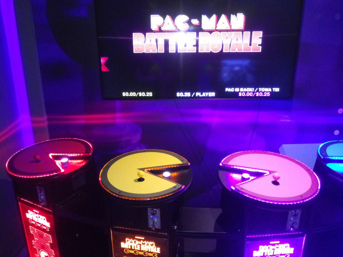 A retro zóna legfelül kapott helyt olyan régi klasszikusok okos újragondolásával, mint a Pac-Man Battle Royale vagy a csocsóasztalba oltott Pong. Remek randi hely, de jó ötlet lehet ide leugrani a haverokkal, esetleg vállalati bulinak kibérelni. Itt található a Hidden Side Lego-asztal is, ahol több készletet kiállították, rengeteg figurával. Megkérdeztem az egyik hoszteszt, hogy nem félnek-e hogy ezek az eszméletlen részletes buszok, temetők és kísértet-járta épületek nem robbannak-e majd negyedóránként szilánkokra. Az a válasz érkezett, hogy a Lego ezt összeszerelve küldte, és egyébként egybe is ragasztották az egészet, ami a Lego Movie szerint ugye nagyon ejnye-bejnye kategóriás lépés, de hát a szükség, gondolom, törvényt bont.