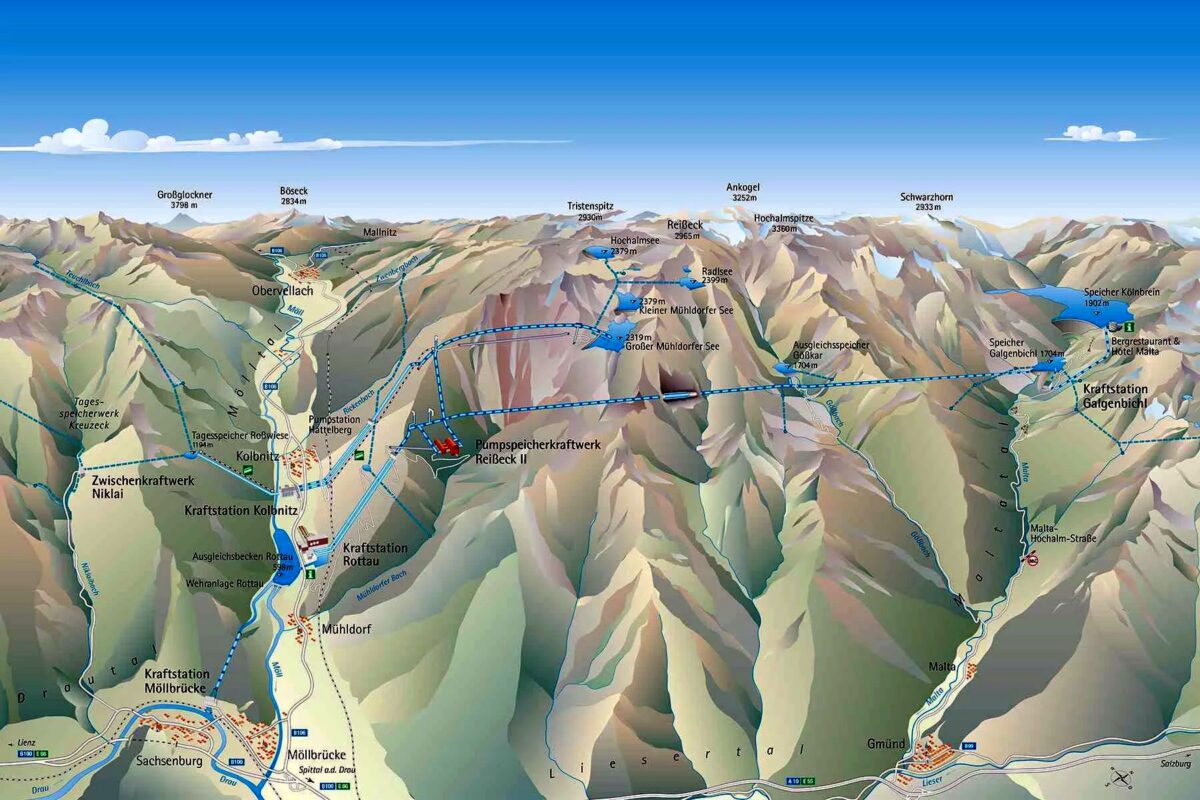 A megfordítható működésű, generátor helyett szivattyúként használt turbinák segítségével a víz az alsóbb víztározókból az osztrák napelem- és szélturbina-parkokból érkező megújuló energiát használva visszanyomható a felső tározóba. Ausztria klimatikus és domborzati adottságai olyan szerencsések, hogy a nyári napenergia-bőségben rendelkezésre álló olcsó elektromos energia remekül felhasználható az addigra leürült tározó visszatöltésére, így a gravitációs vagy szivattyús energiatárolásnak nevezett technológia náluk az éves energiaingadozás kezelésében is komoly szerepet kaphat.