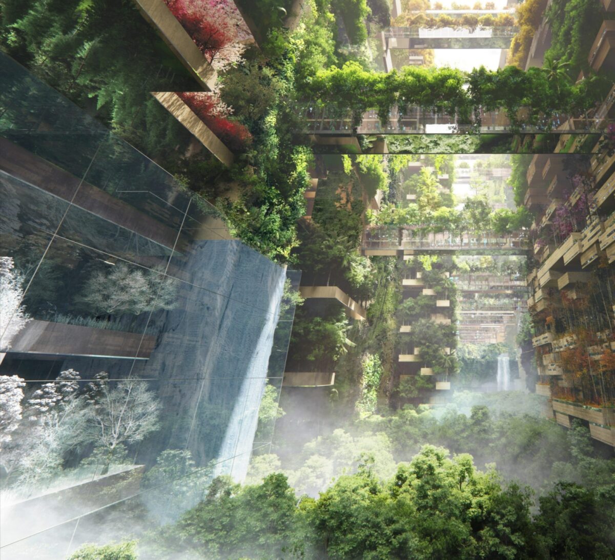 A fél kilométer magas komplexum mindkét oldalát visszatükröző felület borítja, egy ponton összeköttetésben áll majd a Vörös-tengerrel és belső terében rengeteg növény alkot parkokat és biztosít friss levegőt a lakóknak. A zöld életmód más tekintetben is megmutatkozik: a városban nem lesznek autók, a közeledést mikromobilitási eszközökkel és elektromos kisbuszokkal oldják meg rövidebb távon, míg hosszú távon az alsó szinten található nagysebességű vonatokkal utazhatnak az emberek. A legfőbb közlekedési forma azonban egyszerűen a gyaloglás lesz, mivel a tervezésben nagy szerepet játszik az "5 perces város" koncepciója, aminek lényege, hogy a mindennapos élethez szükséges szolgáltatások, iskolák, boltok, munkahelyek, a lakóhelyekhez minél közelebb helyezkedjenek el. A kerékpárok használatát az emeletek közötti közeledésre is lehet használni.