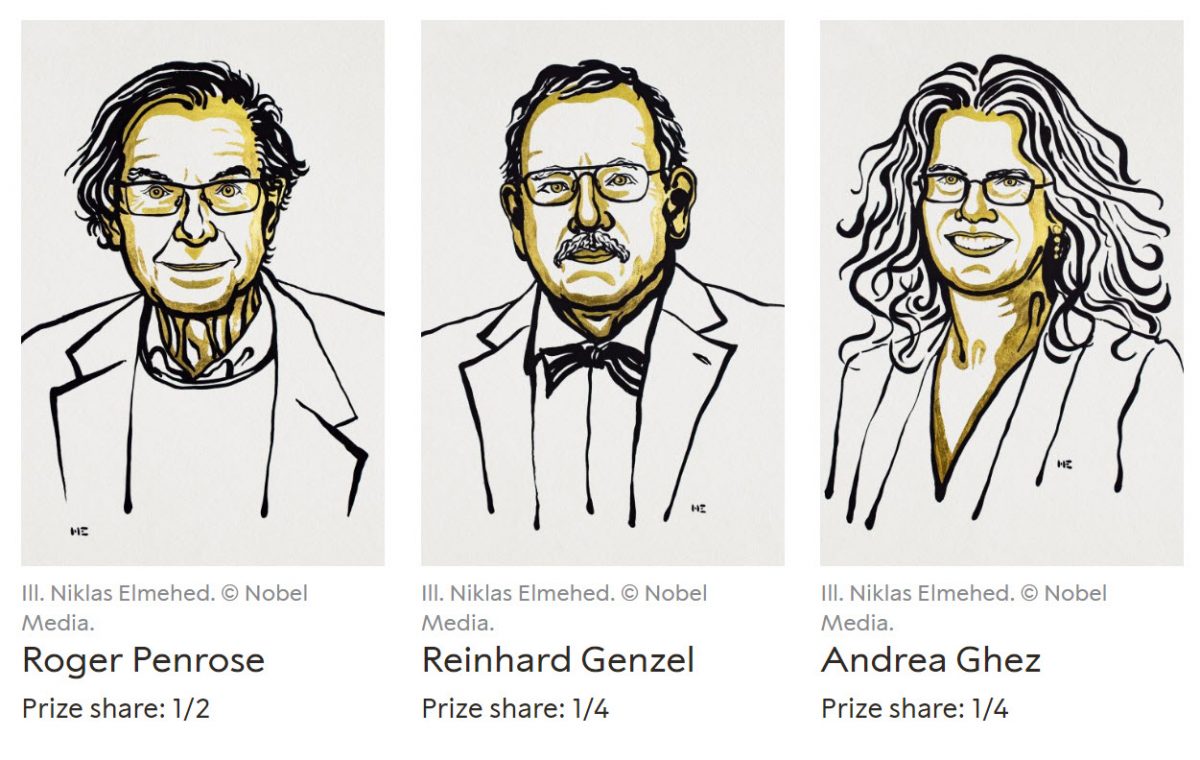 Az idei fizikai Nobel-díj egyik felét Roger Penrose kapta azért a felfedezésért, miszerint az általános relativitáselmélet szilárdan előrejelzi a fekete lyukak kialakulását. A díj másik felét Reinhard Genzel és Andrea Ghez közösen kapták, egy galaxisunk közepén található szupermasszív, sűrű égitest felfedezéséért.