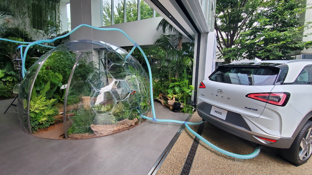 A Nexo Terrariumot jelenleg Tokióban nézhetik meg az érdeklődők, de a Hyundai várhatóan világszerte felhasználja majd ezt a demonstrációs eszközt a hidrogénautózás környezetbarát jellegének illusztrálására.