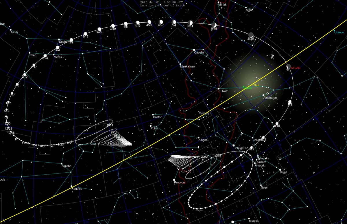 Érdekes, hogy az Atlas majdnem azonos úton halad az 1844-es, híres Nagy üstökössel, - egy olyan orbitális pályán, amely 6000 éves nap körüli keringési idővel rendelkezik, és kilép a Naprendszerből.