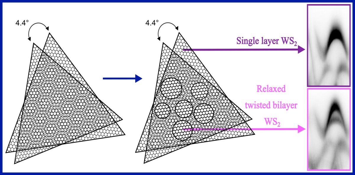 Egy nemzetközi kutatócsoport most egy újabb különleges esetét fedezte fel ezeknek a kétrétegű, csavart struktúráknak - egy olyan esetet, ami rácáfol az elméletek előrejelzéseire, és új betekintést nyújt a kétdimenziós anyagok működésébe. A kutatók az egy atom vastagságú volfrám-diszulfid (WS2) két rétegét helyezték egymásra 4,4 fokkal elfordítva, majd megvizsgálták az elektronok viselkedését az anyagon belül. A teóriák előrejelzései szerint az ilyen típusú kétrétegű anyagban az elektronok interakciója rendhagyó, kollektív működést eredményez, ami fantasztikus tulajdonságokkal ruházza fel az anyagot, azonban a vizsgálat során nem sikerült ehhez hasonló jelenséget kimutatni.