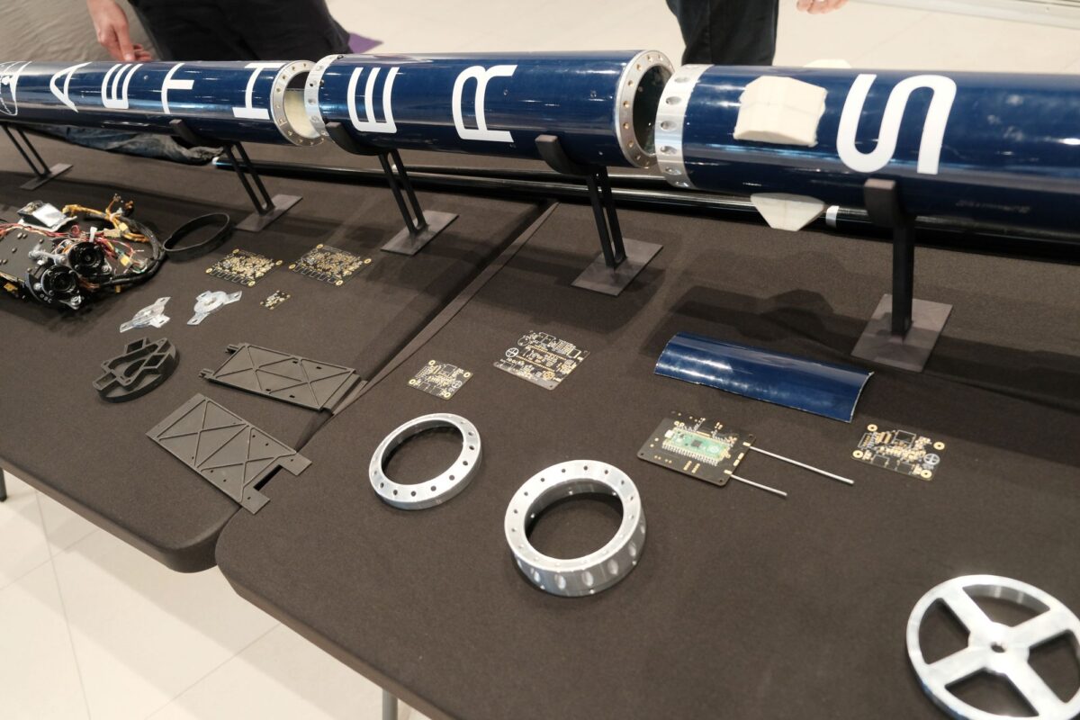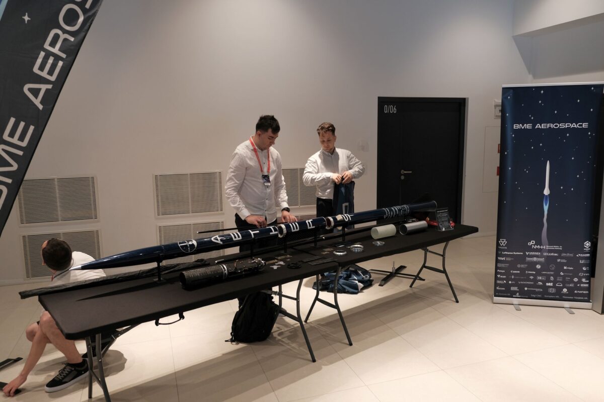 A fenti galériából kiemelnék két különösen komoly standot. A Műegyetem fejlesztő csapata BME Aerospace néven nemzetközi rakétás megmérettetéseken is bemutatja munkája eredményét; izgalmas dolog csak megnézni, végigsimítani is a szilárd üzemanyaggal működő Aether S-t:
