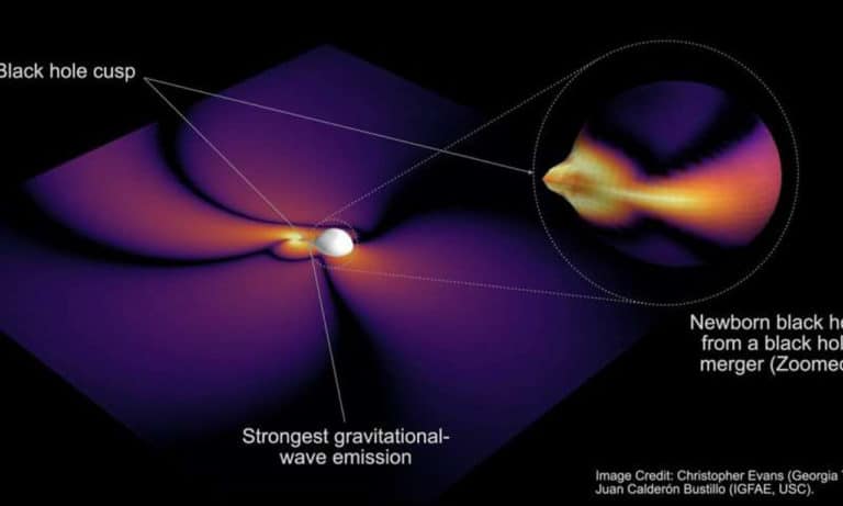 két fekete lyuk összeolvadása után, a létrejött új fekete lyuk nem egyszer, hanem többször is „csiripelt”, azaz gravitációs hullámokat árasztott, intenzív téridő-hullámok formájában, melyekben az alakjáról kódolt információ rejlett.