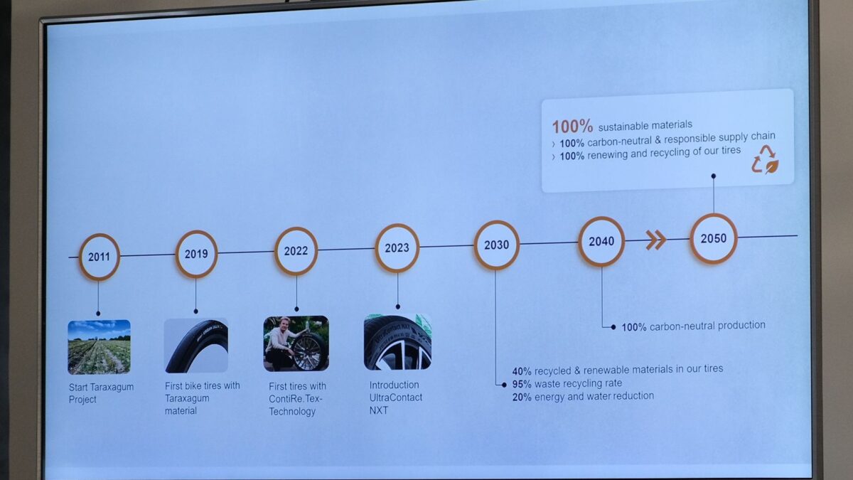 A száraz tervszámokat, miszerint 2030-ra a 2018-ashoz képest 20%-os energia-megtakarítást akarnak megvalósítani, 2040-re kívánják elérni a teljes CO2-semlegességet minden Conti-gyárban, 2050-re pedig a teljes beszállítói láncban, csak néhány PPT-diával tudjuk illusztrálni - érthető okból a jövőből még gyári sajtófotókat sem kaphattunk.