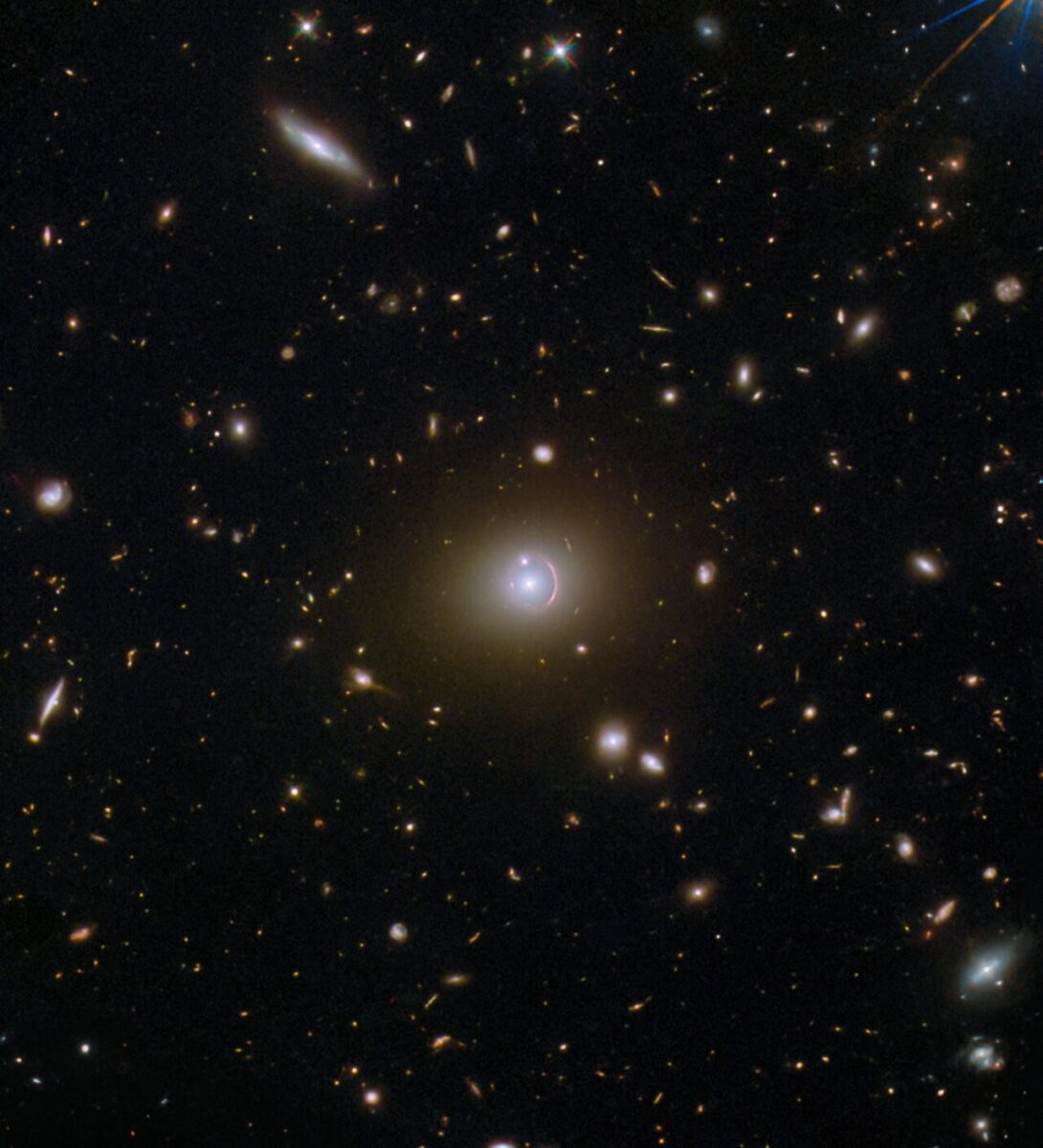 Az Einstein-gyűrűk egy ritka és lenyűgöző kozmikus jelenség, és tehát kiválóan szemléltetik, hogy a téridő görbülete miként vezethet a fény csillagászati léptékű elhajlásához, ami gyakran látható, amikor az egyik galaxis fénye körülöleli a másikat. Ez a jelenség a távoli fényforrás és a lencseként működő közbenső tömeg pontos egymáshoz igazítása esetén látható, és ilyenkor jellegzetes körkörös vagy részleges fénygyűrű alakul ki. A mostani, részleges Einstein-gyűrűnek a jelenlétét a képen egy civil tudományos projekt, a SPACE WARPS azonosította. A kép tehát nem csak a tömeg téridőre gyakorolt hatását szemlélteti, de azt is, hogy a nyilvánosságnak milyen fontos szerepe lehet a tudományos projektekben.
