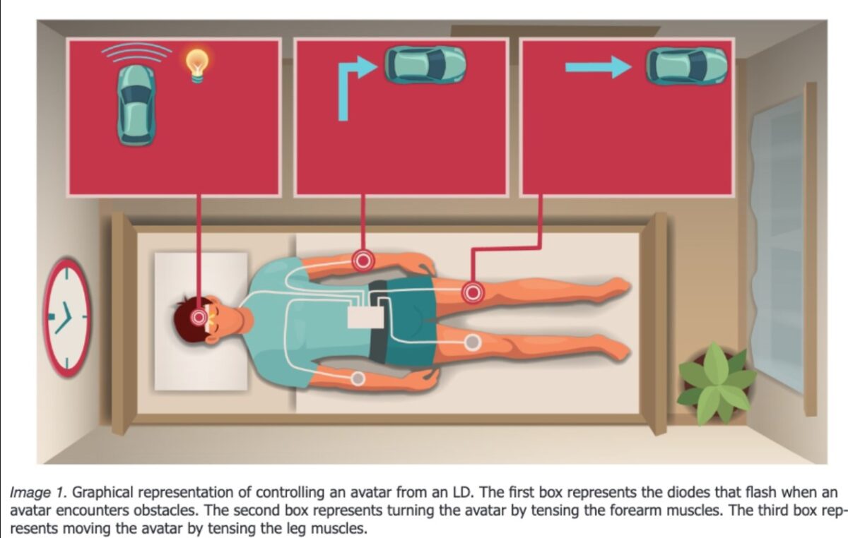 A REMspace pedig kifejlesztett egy olyan speciális eszközt, amely képes érzékelni ezeket az apró izomösszehúzódásokat. A kísérlet során a résztvevőknek először éber állapotban kellett megtanulniuk, hogyan navigáljanak egy virtuális autóban fényjelzésekre reagálva, miközben csukva tartották a szemüket. Különböző izommozdulatok jelezték a kanyarodást és a gyorsítást: mindkét láb megfeszítése a gyorsítás, míg a karok rángása a kormányzás “jele” volt.