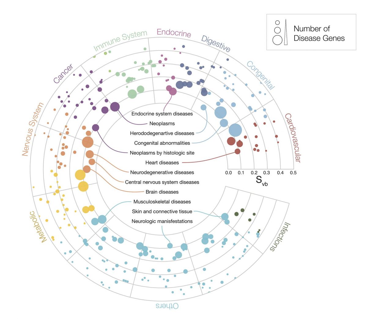 A betegségekkel kapcsolatba hozható fehérjék rendszere ún. betegségmodult alkot, ez lényegében egy gráf, amely tartalmazza a betegséggel kapcsolatba hozható valamennyi molekuláris szintű összetevőt. A betegségmodulok ilyen értelmű azonosítása lehet az első lépés a komplex betegségek molekuláris mechanizmusának megértéséhez.