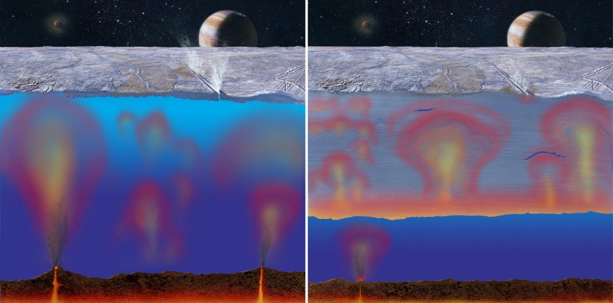 Az Europa óceánjának létezésére utaló sejtéseket a két Voyager és a Galileo űrszonda adatai is alátámasztották, valamint azok a földi teleszkópok is, amelyek a Jupiter holdjait figyelték meg. Az elképzelés szerint a felszíni jég 12-15 kilométer vastagságú, az alatta meghúzódó óceán pedig akár 60-150 kilométer mély is lehet.