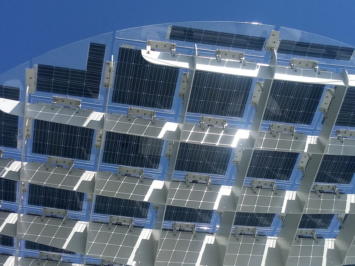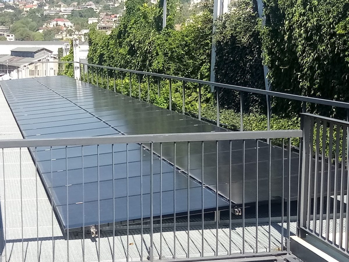 Ám a függőkertnek feljuthatunk a tetejére is, ahol egyrészt még több napelemet láthatunk: