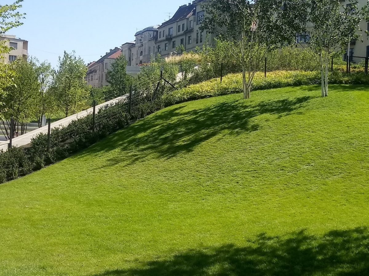 „Az új zöldfelületen összesen 355 előnevelt fát telepítettek, létrehoztak egy 700 négyzetméteres, vízinövényeknek otthont adó tavat és kialakítottak egy új, 500 férőhelyes mélygarázst is.