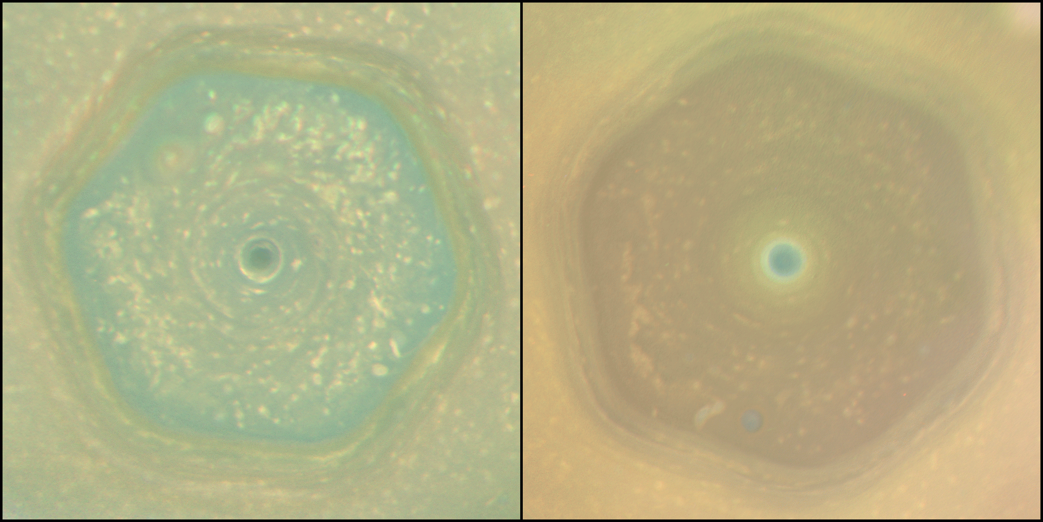A titokzatos jelenséget legutóbb a Hubble Űrteleszkóp és a James Webb Űrteleszkóp örökítette meg, miközben a Szaturnuszt fotózták: mindkét felvételen halványan látszanak a pólus körüli vihar egyes sarkai, bár ebből a szögből főként a Szaturnusz más jellegzetességei, például a jeges gyűrűk és az atmoszféra rétegei szembetűnőek.