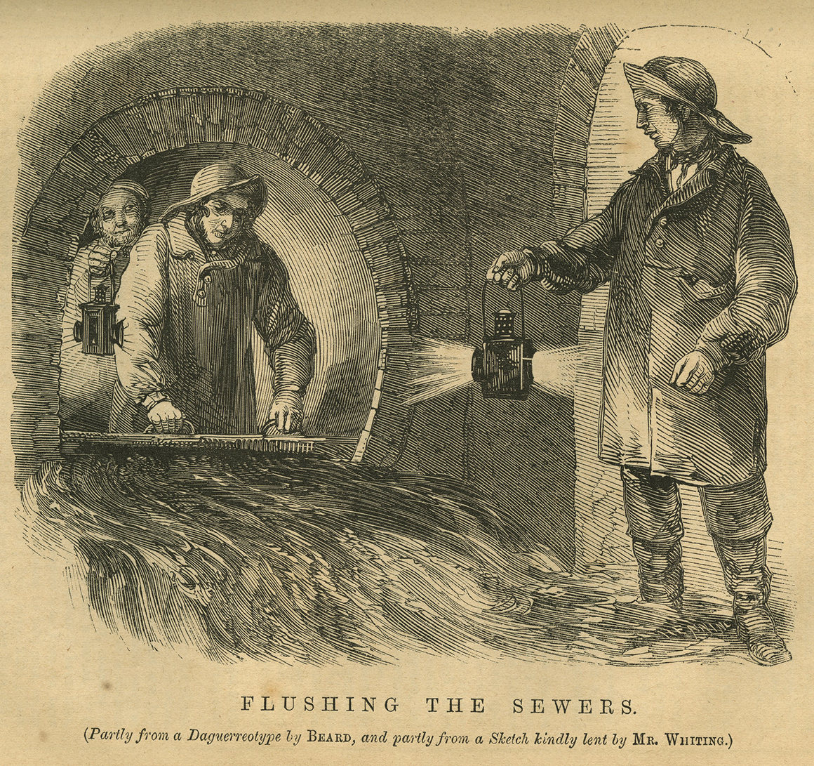 Élt akkoriban egy újságíró, nevezetesen Henry Mayhew, aki alighanem mindenkinél jobban ismerte London csatornáit, mivel az 1840-es években a város koldusai, patkányirtói, utcai ételárusai és más, kevésbé szem előtt lévő munkás életét dokumentálta. Sorozatban megjelenő írásait a „A londoni munka és a londoni szegénység” című többkötetes kiadványban publikálta, 1851-ben. Mayhew tapasztalatai szerint a tavaszi áradásokkor a bűzlő csatornavíz „utat tört magának a rácsokon át az utcákra”, mígnem az alacsonyabban fekvő negyedek