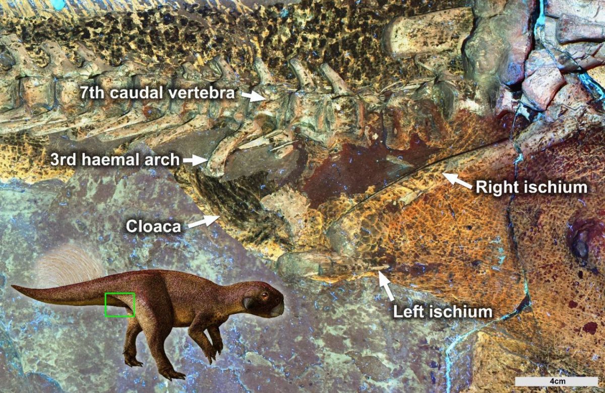 A psittacosaurus egy korai ceratopsia, a Triceratops közeli rokona, körülbelül 120 millió évvel ezelőtt élt, és több mint egy évtizede nyilvános kiállításon is megtekinthető a frankfurti Senckenberg Természettudományi Múzeumban Németországban. Primitív tollairól és színezetéről már számos tudományos cikket írtak, a kloákát azonban csak most vizsgálta meg az ausztráliai New England Egyetem Phil Bell vezette kutatócsapata.
