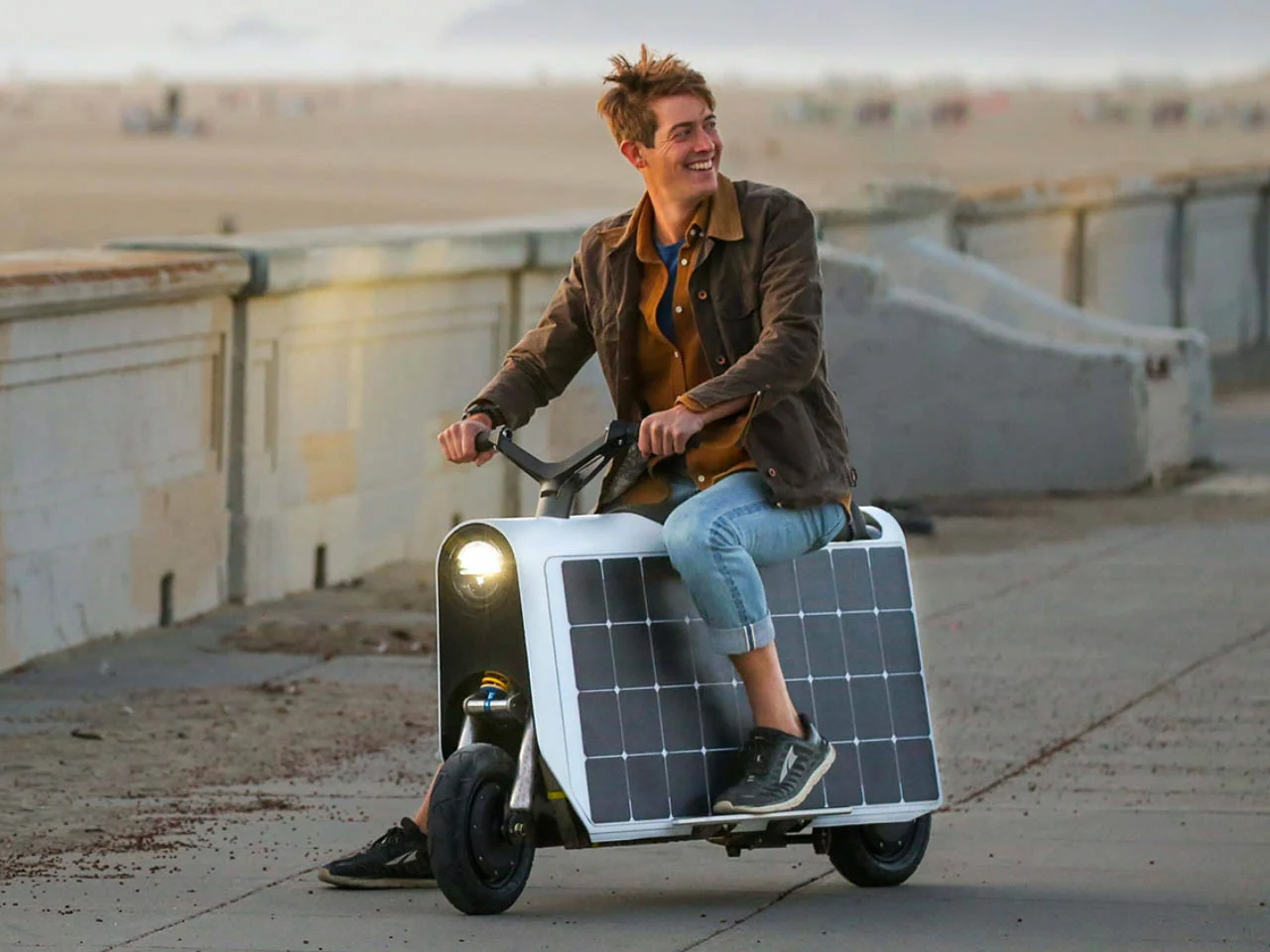 Az amerikai Otherlab járműve első látásra egy kétkerekű napelemnek tűnik és tulajdonképpen valóban az is: egy apró robogó, amit teljesen napelemes panelekbe burkoltak az energiahatékonyság és hatótávnövelés érdekében. A 120W-os panelek elegendő energiát biztosítanak ahhoz, hogy a jármű 5 kilométert tegyen meg egy órás töltés után, összességében pedig napi körülbelül 30 kilométert tud haladni csak a napelemes rendszerre alapozva, legalábbis megfelelően napos időben.