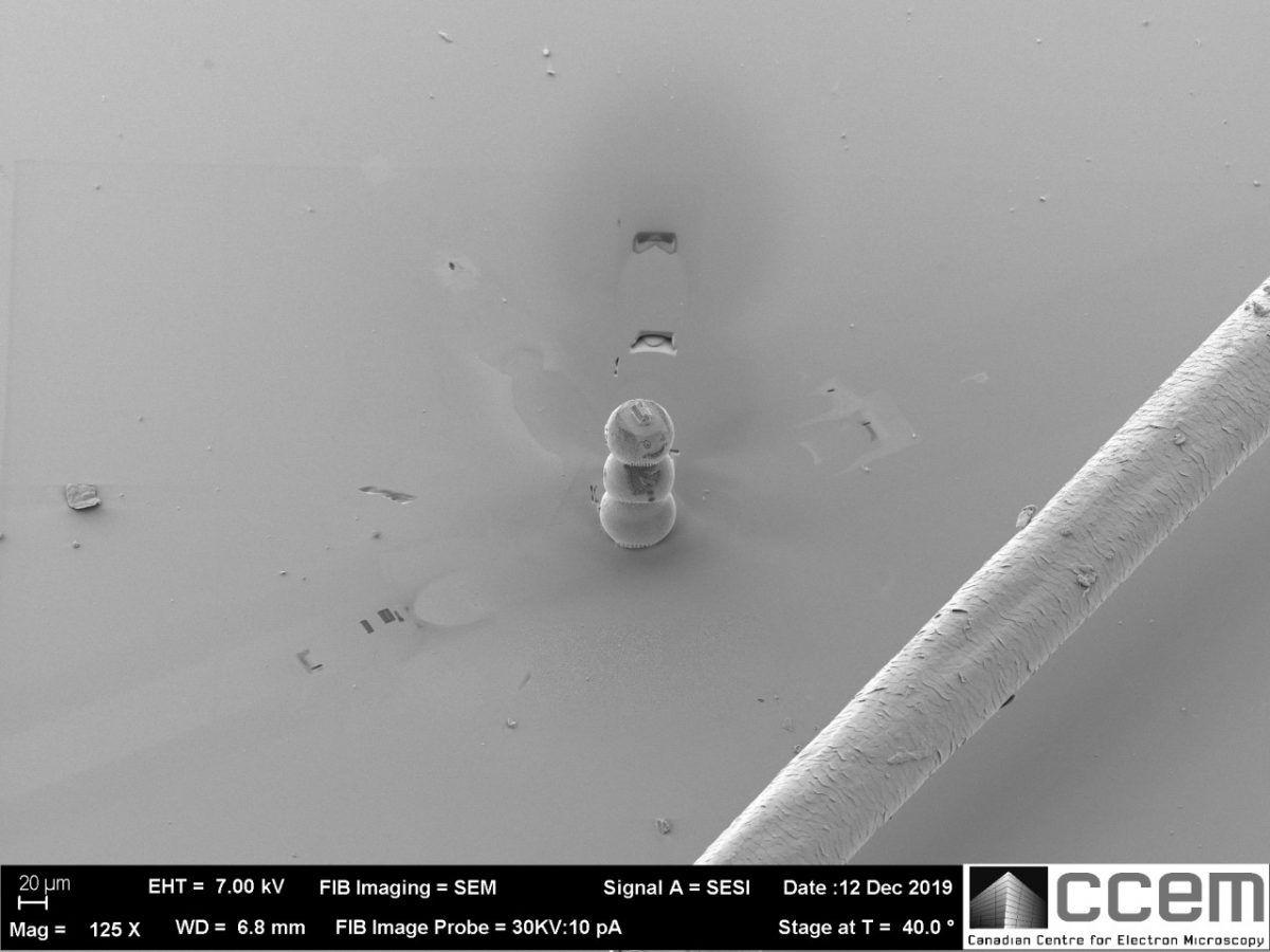 Akkor mire jó? – kérdezhetjük még az ünnepi készülődésben született pragmatizmussal. A válasz: Travis Casagrande, a ház és az annak otthont adó hóember építője az elektronmikroszkóp képességeit szerette volna bemutatni a laikusoknak.