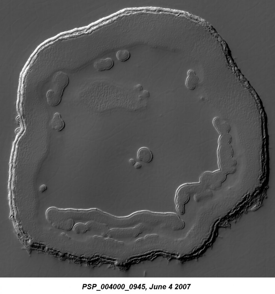 A mosolygó kráterben a domborúnak látszó felületek valójában homorúak, vagyis mélyedésekről beszélhetünk. Hogy miért látjuk fordítottnak, arról a fény beesési szöge tehet, mivel az emberi agy a felülről érkező fényhez szokott, és ez alapján értelmezi a látottakat is. Ám ha száznyolcvan fokkal elforgatjuk a fotót, akkor már a megfelelő felületet látjuk, csakhogy ezáltal nyoma vész a kráter mosolyának.