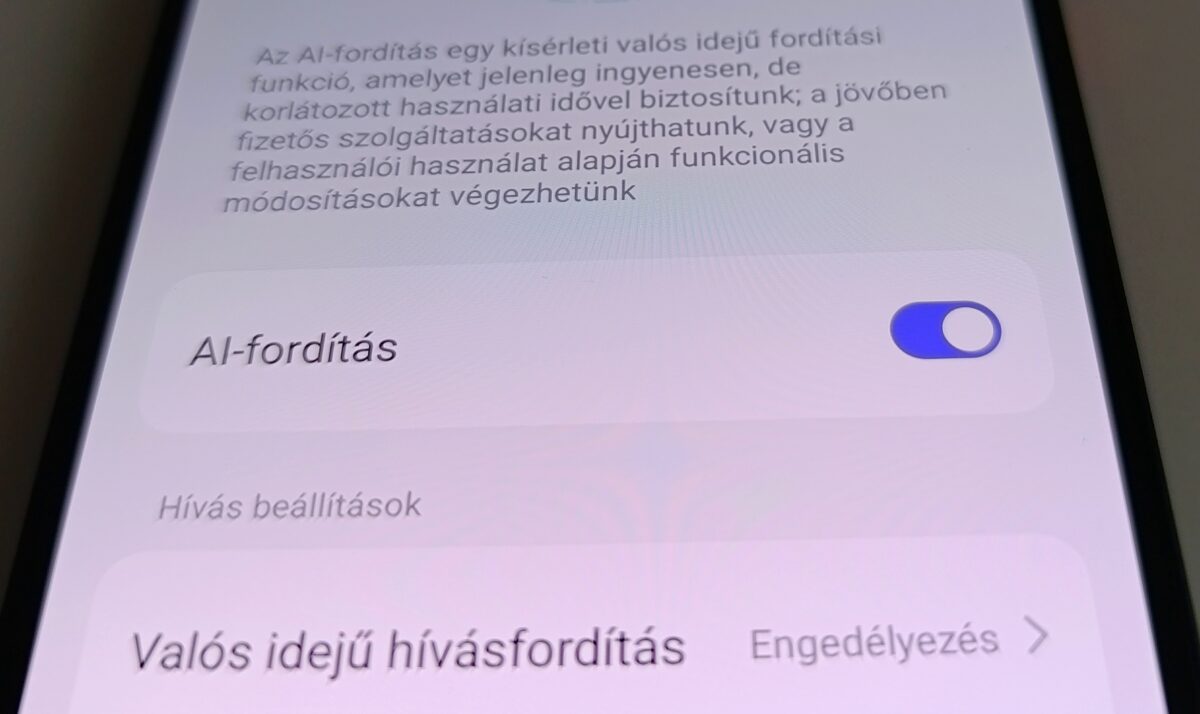 Amennyiben a beállításokon belül belépünk a nubia AI fordítás menübe, és bekapcsoljuk a funkciót, hívás közben kaphatunk fordítást valós időben, felirattal - ehhez szükséges internetkapcsolat és engedélyezni kell a hozzáférést a Microsoft számára, de az adatokat nem tárolják az ígéretek szerint.