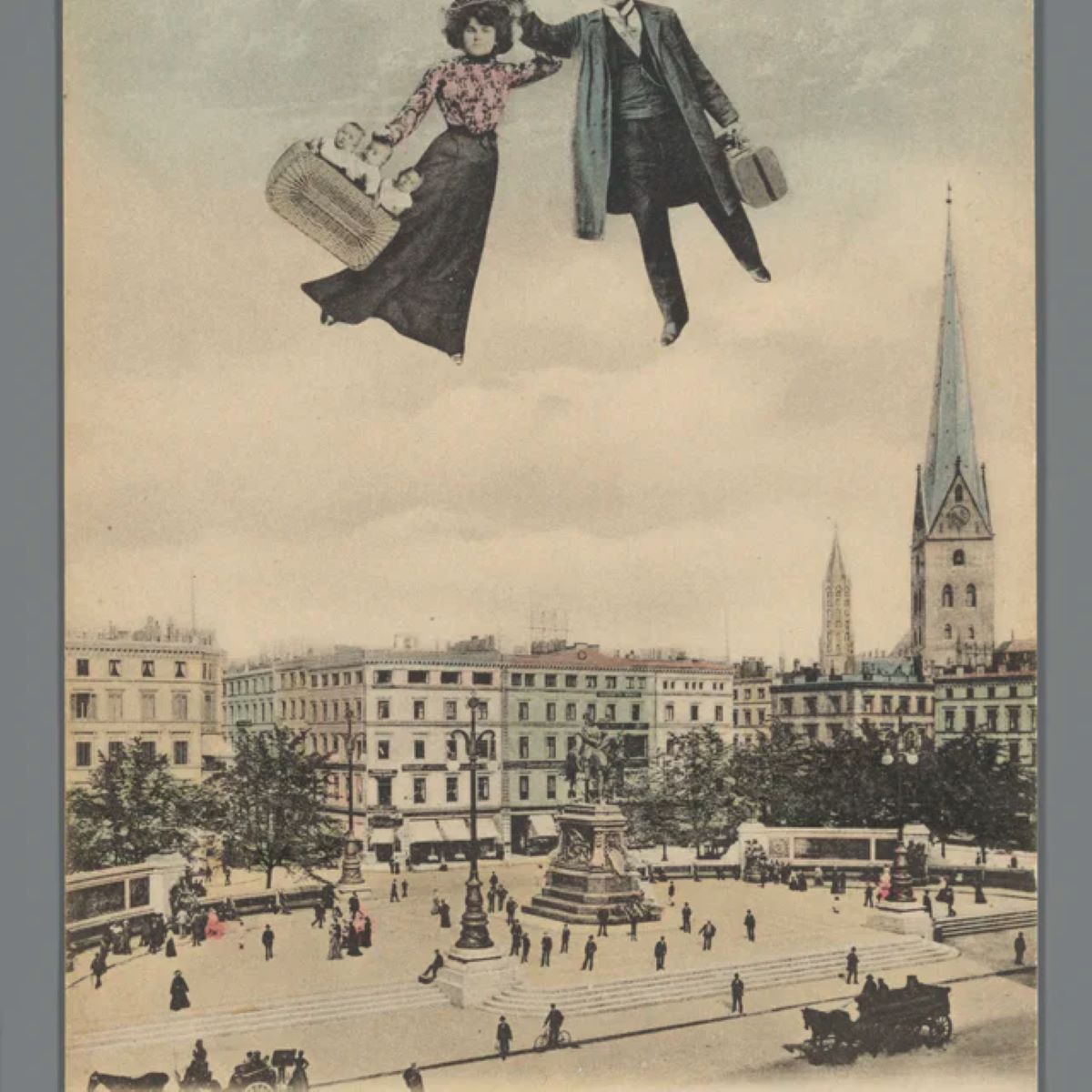 P. Michaelis által publikált kép 1900-1910-ből, a család Hamburg fölött repked egy átlagos hétköznapon