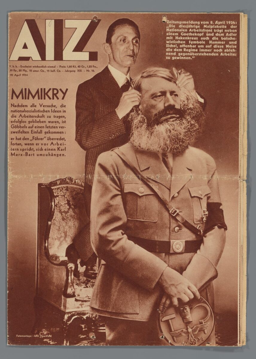 A John Heartfield, azaz Helmut Herzfeld által készített kép az Arbeiter-Illustrierte-Zeitung nevű lapban jelent meg 1934-ben. A lap a munkásosztály szemszögéből mutatta be az eseményeket, és ellenezte a nemzetszocialista párt és Adolf Hitler hatalomra kerülését.