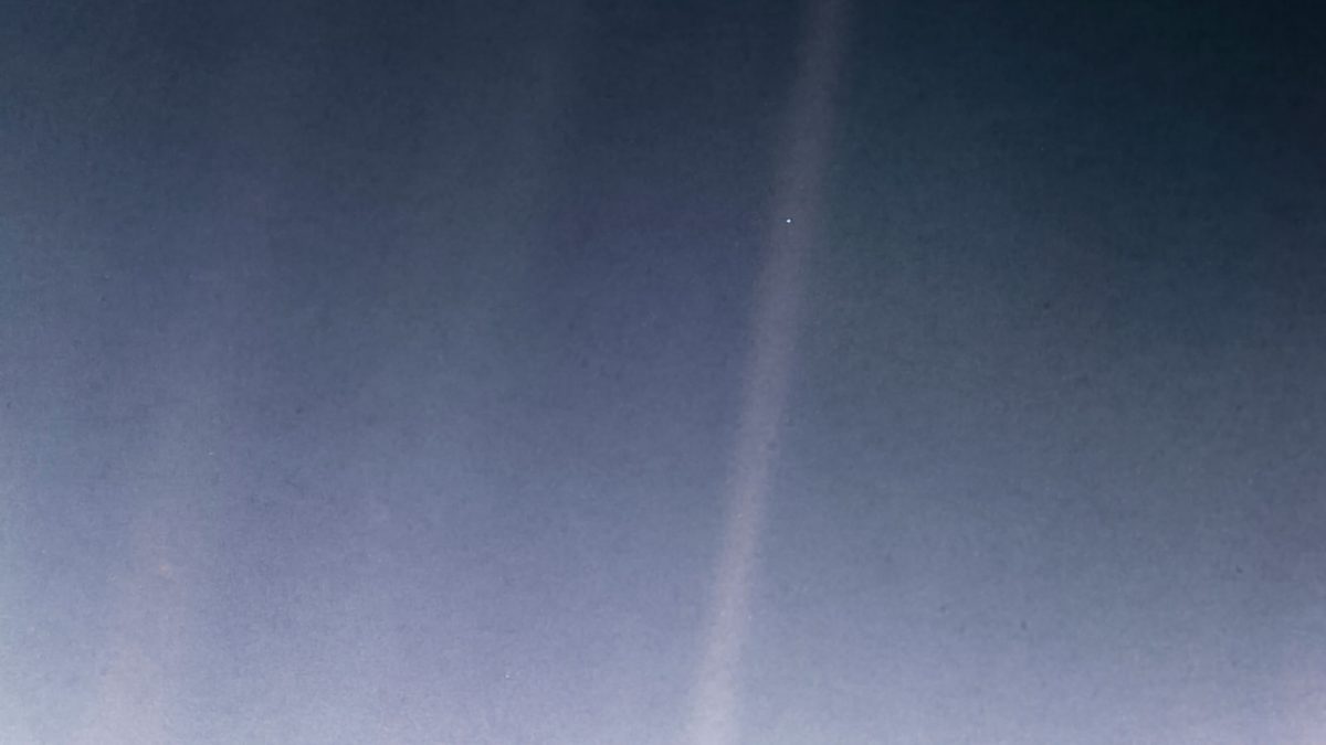 A fent látható kép tehát az űrkutatás egyik leghíresebb képe. Amint az ismert tudós, Carl Sagan fogalmazott: ez a „Halványkék Pötty” maga a Föld. A kép 1990. február 14-én készült 6 milliárd km távolságban a Naptól. A Voyager 1 ekkor épp kifelé száguldott a Naprendszerből – a Neptunuszon túl és körülbelül tehát 6 milliárd kilométerre a Naptól –, amikor a küldetésirányítás arra utasította, hogy még egyszer visszanézzen „hazafelé”. A szonda 60 képből álló sorozatot készített, amelyeket felhasználtak Naprendszerünk első, úgynevezett „családi portréjának” elkészítéséhez. A „családi portré” volt amúgy az első és máig az egyetlen alkalom, amikor egy űrszonda megpróbálta lefényképezni otthoni naprendszerünket. Csak három űrszonda volt képes ilyen megfigyelésre ekkora távolságból: a Voyager 1, a Voyager 2 és a New Horizons.