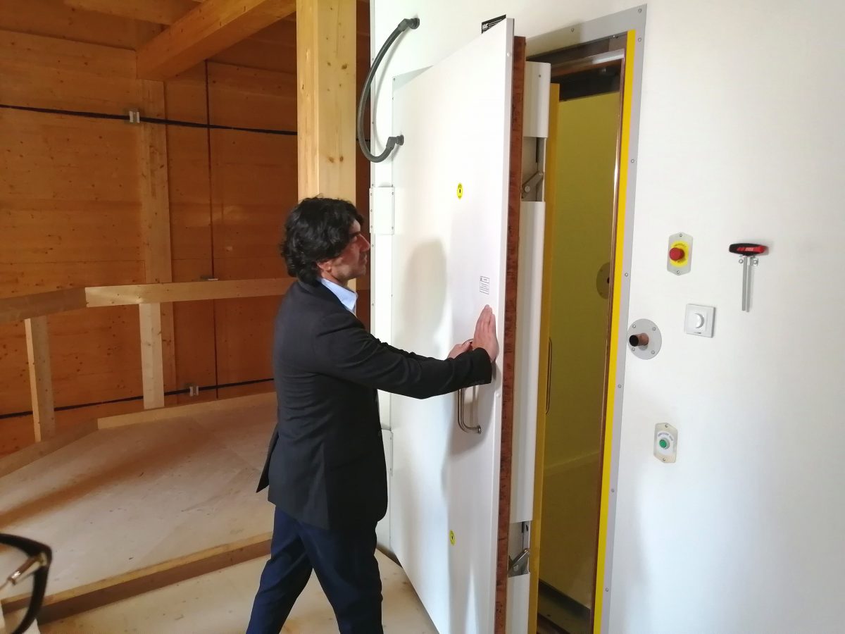 A laboratórium második védelmi vonalát a passzívan működő, de szintén fontos szerepet játszó rendszer jelenti: ezt többek között a létesítményt alkotó anyagok körültekintő kiválasztásával valósították meg az építkezés alatt. Magát a kocka alakú fogadóépületet kizárólag mágnesezhető anyagoktól mentes összetevők felhasználásával készítették el, azaz főként fagerendák alkotják és vasbetont egyáltalán nem tartalmaz. A laboratórium bemutatóján az építési munkákat végző Ubrankovics Kft. munkatársa, U. Nagy Gábor elmondta,
