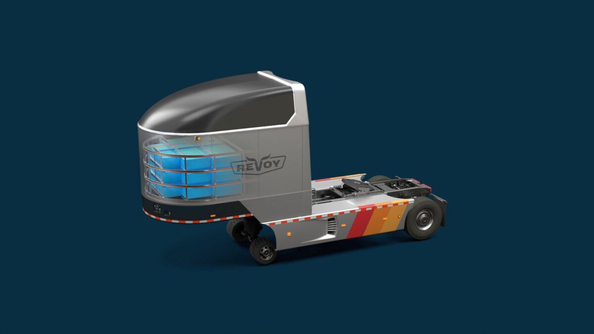 A Revoy terméke egy hatalmas, 525 kWh-s akkumulátort és a villanymotorral hajtott tengelyt is tartalmazó közdarab, ami beilleszthető a járműszerelvénybe a vontató és a félpótkocsi közé. Az elektromos hajtás elsősorban a hosszú, egyenletes terhelést igénylő autópályás szakaszokon válthatja ki a dízelmotor erejét. A hatótáv egy akkuval négyszáz kilométer, a "töltési idő" pedig nagyjából öt perc, mert a Revoy üzleti modelljében nem gyorstöltők, hanem útmenti állomásokon frissre cserélhető elektromos modulok szerepelnek, valahogy úgy, mint ahogy régen a postakocsik előtt lecserélték a kifáradt lovakat.