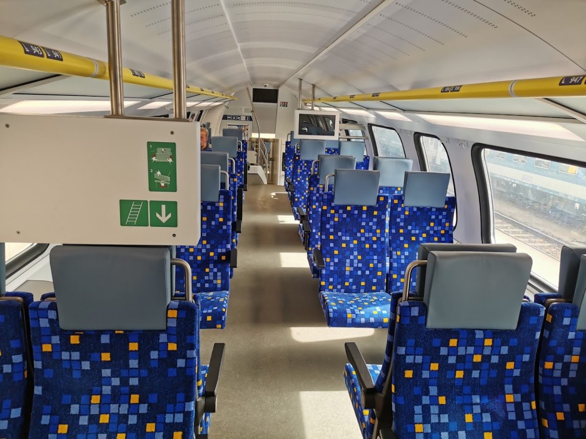 Említésre méltó viszont, hogy nagyjából az Állatkert magasságában, ahol elősejlenek a Biodóm buborékjai, az emeleten egy szakaszon jelentős kilengést lehetett tapasztalni amolyan hullámvasút jelleggel – és ezen a szakaszon visszafelé is ez volt a helyzet. Ezen a részen túl egyébként nincs semmiféle, kellemetlen magasságérzet, sőt szinte fel sem tűnik, hogy nem mondjuk egy Siemens DESIRO-n üldögélünk. Eztán tehát sima utunk volt, és körülbelül végig tartva a 120 km/h-t, szokatlanul európai körülmények közt csapattunk le Nagymarosra.