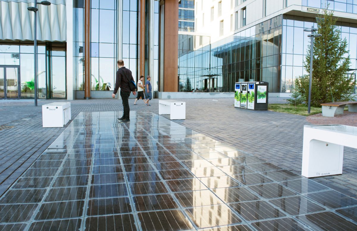 Már 2017-ben sikerült alkalmazni: Kazahsztánban, az asztanai Green Quarter bevásárló központ előtt 80 négyzetméteren építették be.