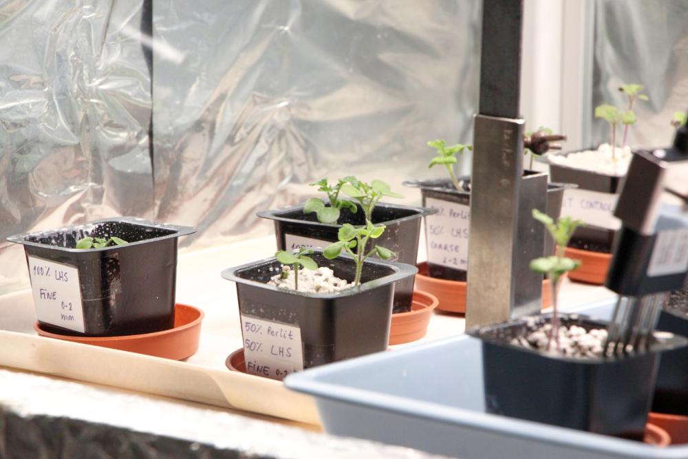 A program egy korábbi szakaszában meglátogattuk a laboratóriumot, ahol a kutatók be is mutatták a kamrában növekvő hajtásokat - közülük mindegyik más-más arányban kevert simulant/virágföld mixben éldegélt, volt amelyik nagyobb arányban (50%-ban) kapott valódi földet, de volt olyan is, amelyik 90-10%-os arányú simulant/virágföld keverékben fejlődött ki. Ez utóbbi éppen egy mustárnövényke volt. A laborban többféle simulanttal dolgoznak, az LHS-1 (Lunar Highland Soil) segítségével a Hold felföldjeit, az LMS-1-el (Lunar Mare Soil) a holdtengerek egyenletesebb talaját szimulálják, emellett használnak a marsi talajt imitáló anyagokat is, az MGS-1-et és a JEZ 1-et, előbbi a Rocknest homokfolt, utóbbi a Jezero-kráter környékének ásványi összetételét jeleníti meg. A kísérlet későbbi fázisában már a 100%-os LHS-be és a perlit/simulant keverékbe ültetett mustárok is kihajtottak.
