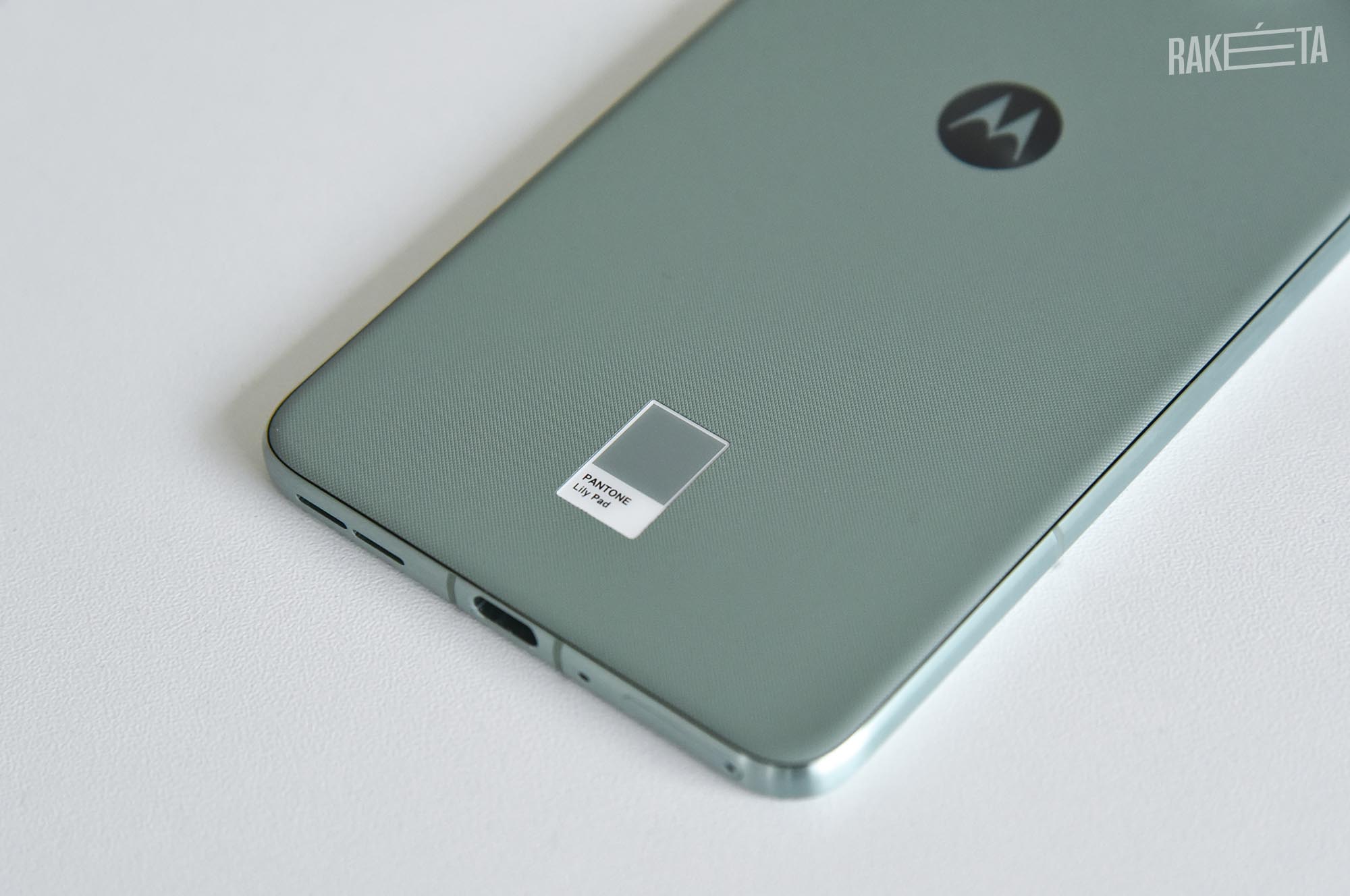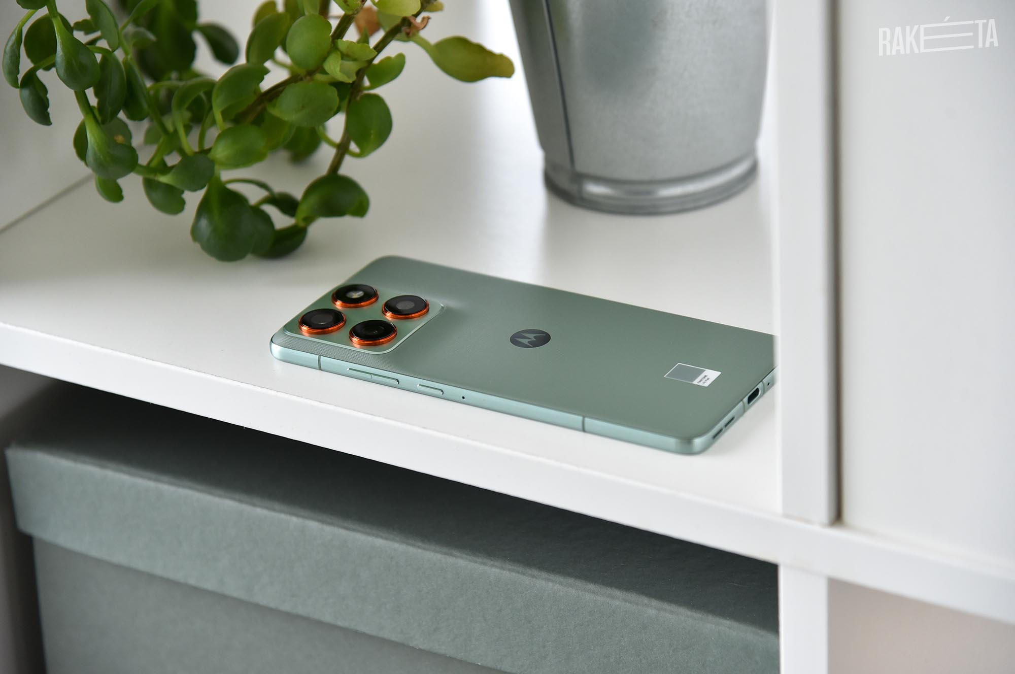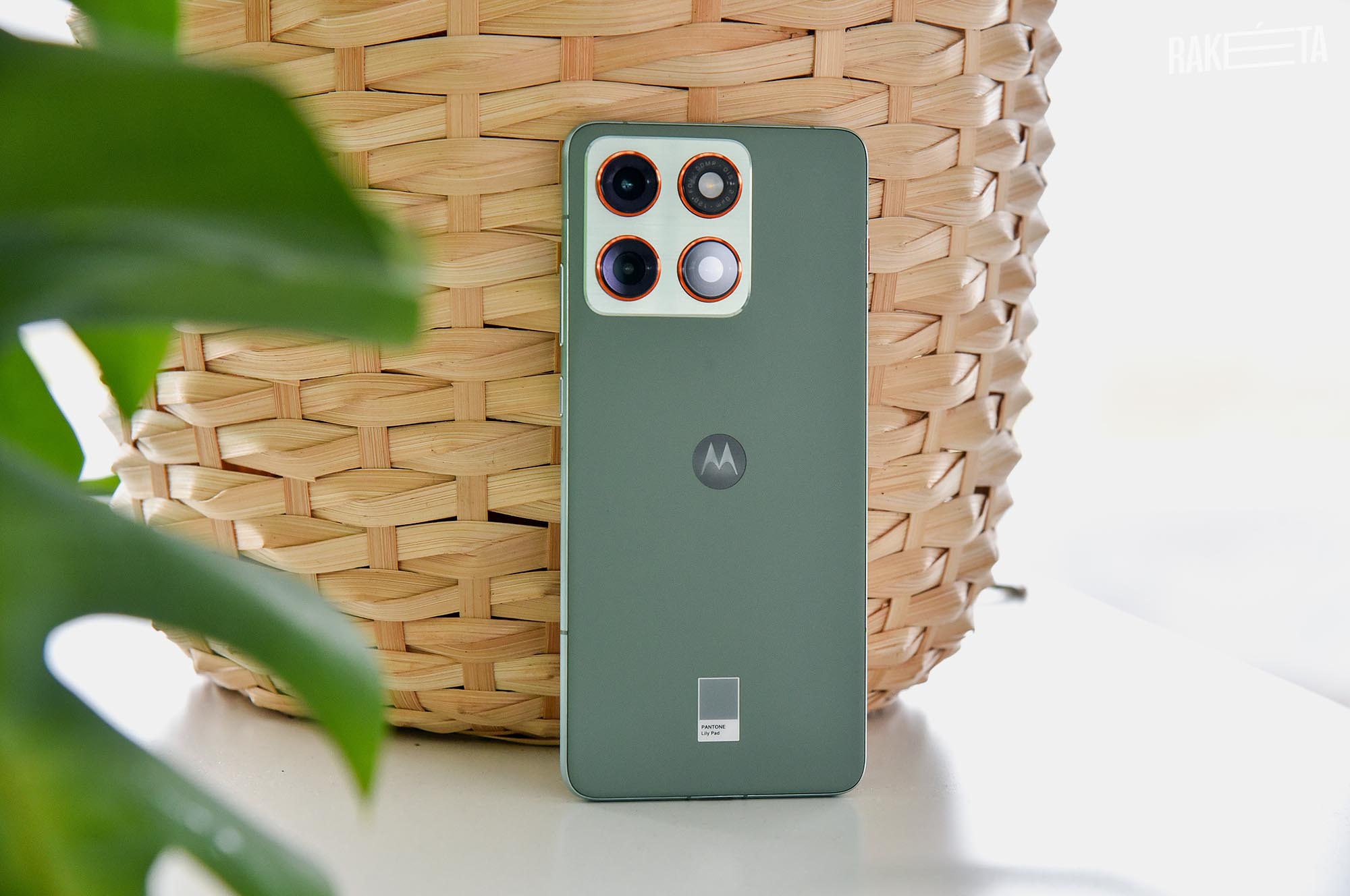 Kézbe véve a készüléket garantált a meglepetés, az 5,99 milliméteres vastagság és a 159 grammos tömeg mellett az Edge 70 szinte súlytalannak érződik. Az alumíniumötvözet váz masszív keretet ad neki, a hátlapot pedig egy kellemes tapintású, különleges textúrájú szilikonfelület borítja. A Pantone által válogatott árnyalatok, mint a Bronze Green, vagy a képeken látható Lily Pad a színes kameragyűrűkkel együtt végképp karakteres megjelenést kölcsönöznek neki. Ne tévesszen meg a kecses külső, az IP69-es besorolás, a MIL-STD-810H katonai szabvány és a Gorilla Glass 7i védelem gondoskodik róla, hogy ne kelljen hímes tojásként bánni vele.