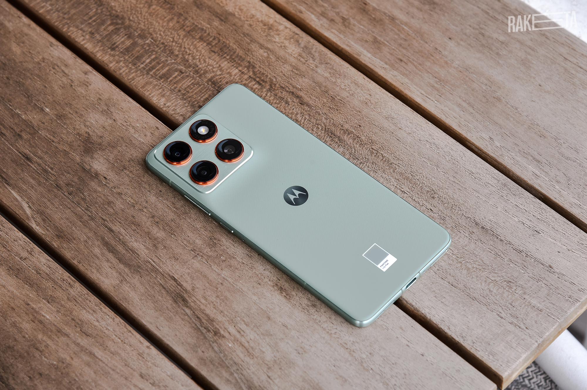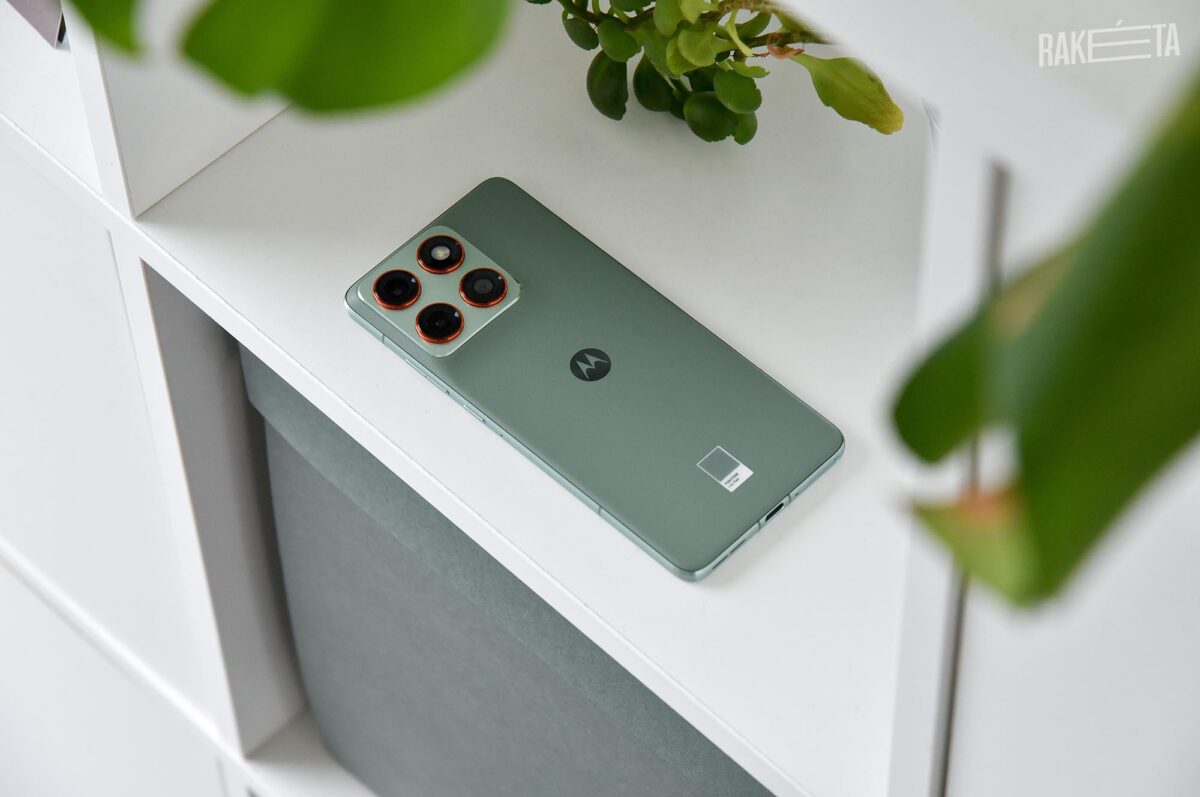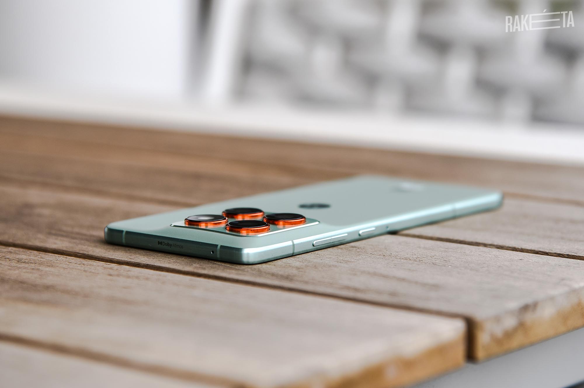Kézbe véve a készüléket garantált a meglepetés, az 5,99 milliméteres vastagság és a 159 grammos tömeg mellett az Edge 70 szinte súlytalannak érződik. Az alumíniumötvözet váz masszív keretet ad neki, a hátlapot pedig egy kellemes tapintású, különleges textúrájú szilikonfelület borítja. A Pantone által válogatott árnyalatok, mint a Bronze Green, vagy a képeken látható Lily Pad a színes kameragyűrűkkel együtt végképp karakteres megjelenést kölcsönöznek neki. Ne tévesszen meg a kecses külső, az IP69-es besorolás, a MIL-STD-810H katonai szabvány és a Gorilla Glass 7i védelem gondoskodik róla, hogy ne kelljen hímes tojásként bánni vele.