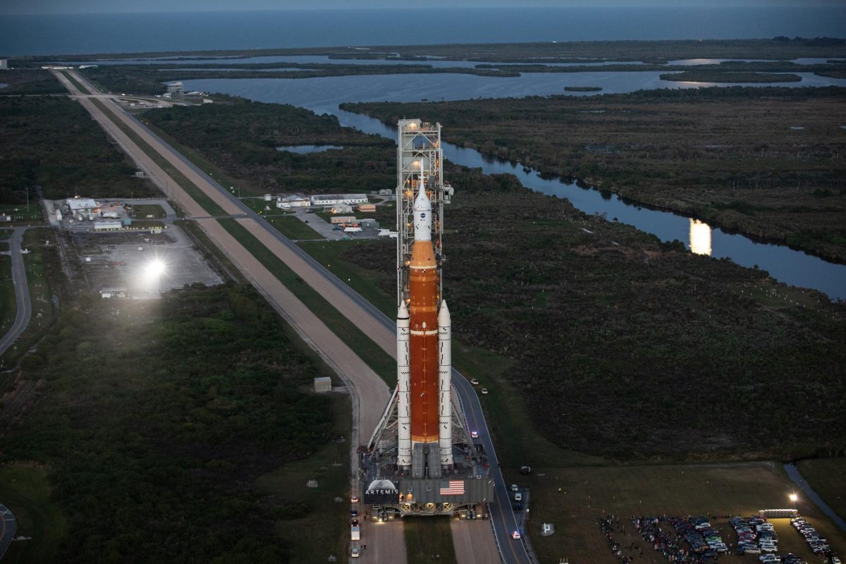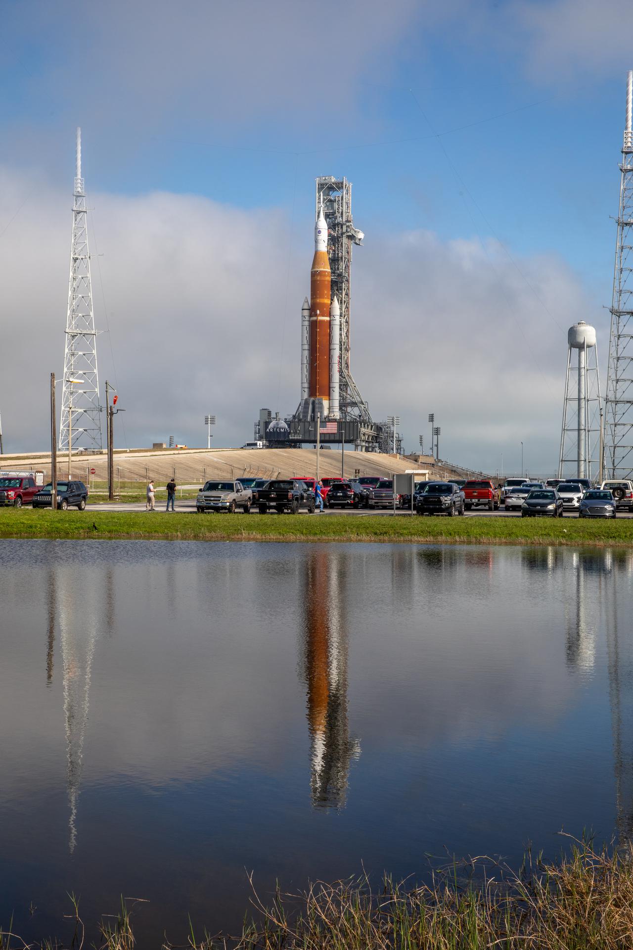 Az SLS, tetején az Orion űrkpaszulával magyar idő szerint csütörtök este, 11 óra előtt néhány perccel gördült ki a floridai Kennedy Űrközpont összeszerelő csarnokából, hogy megkezdje több mint tízórás útját a 6,5 kilométerre található 39B kilövőállás felé. A rakétát a Crawler-Transporter 2 névre keresztelt hernyótalpas járművel szállították, amelyet a NASA még 1965-ben fejlesztett ki az Apollo-missziókhoz használt Saturn V szállítására, és a néhány évvel ezelőtti korszerűsítése óta akár 8200 tonna egyidejű mozgatására is képes.
