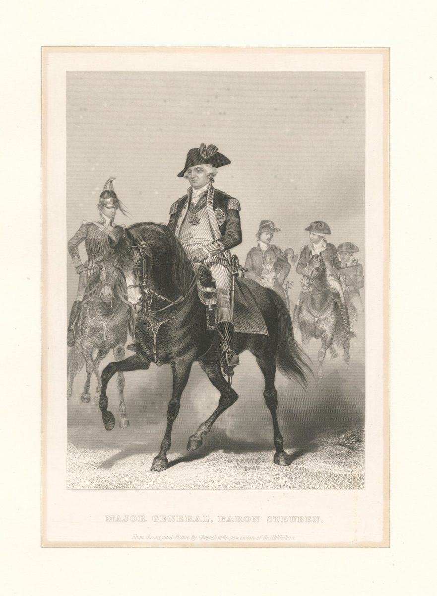 A fentiek tükrében nyugodtan kijelenthetjük, hogy a pennsylvaniai Valley Forgban várakozó amerikai csapatok még soha nem láttak von Steubenhez fogható jelenséget. A történethez hozzátartozik, hogy még a Hohenzollern-kastélyban, több hónapos álláskeresés után von Steuben kancellári kinevezést kapott Josef Friedrich Wilhelmhez, a Hohenzollern-Hechingenhez. Von Steuben pozíciója minden előnyét kiélvezte, különösen miután 1769-ben a badeni őrgróf az arisztokratikus hűségrend lovagjává tette. Röviddel ezután pedig felvette a 'báró' címet. Von Steuben 1777 decemberében érkezett Portsmouthba, New Yorkba. Miután vörös egyenruhájuk miatt majdnem letartóztatták, von Steubent és pártját pazarul szórakoztatták Bostonban, mielőtt Massachusettsből elindultak. A legenda szerint érkezésekor selyemruhát viselt, ölében egy miniatűr agár terpeszkedett, nyomában pedig szolgák és szeretők hada loholt.