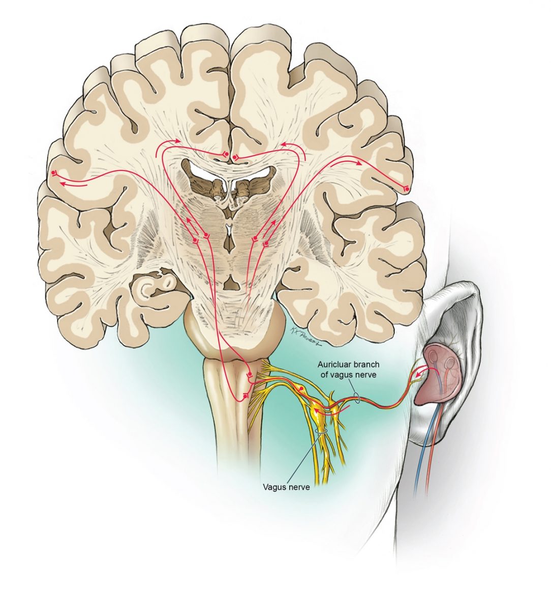 Az általuk alkalmazott technológia, az úgynevezett transzkután vagus elektromos idegstimuláció (tVNS), melynek elindításához egy apró stimulátort helyeznek az egyén külső fülbe, és észrevehetetlen elektromos impulzusokkal aktiválhatják a vagus ideget, hogy stimulálják az ideg egyik közeli ágát.