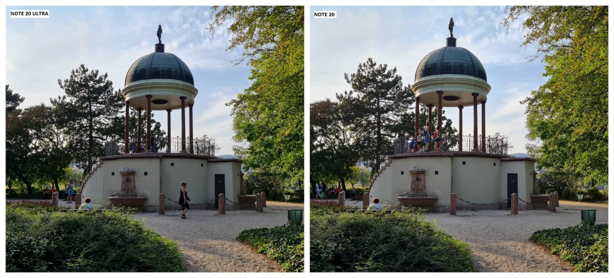 A mobiltelefon kijelzőjén összehasonlítva a képeket itt sem láttunk különbséget, de belenagyítva, és tüzetesebben megvizsgálva a fotókat kiderült, hogy itt azért van egy komolyabb különbség, ugyanis a Note 20 Ultra kamerája valamivel részletesebb fotókat készít, és a színei is kicsit szebbek.