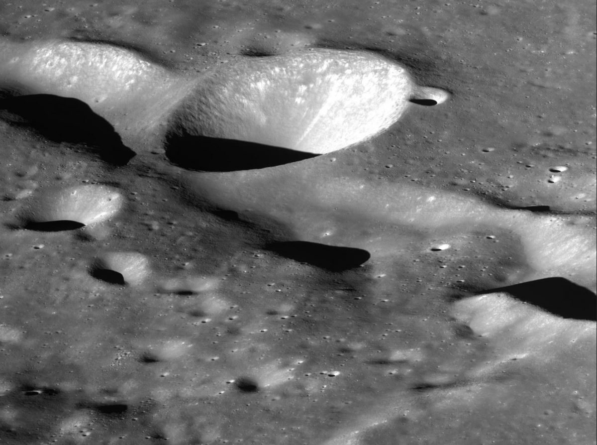 Az alábbi képen a Vallis Schrödinger, vagyis "Schrödinger-völgy" látszik, ami egy hosszú, csaknem teljesen egyenes völgy, és a hatalmas, 312 kilométer átmérőjű Schrödinger-kráterhez vezet. Ebből a kutatók arra következtetnek, hogy a völgy is a krátert létrehozó becsapódás során keletkezhetett.