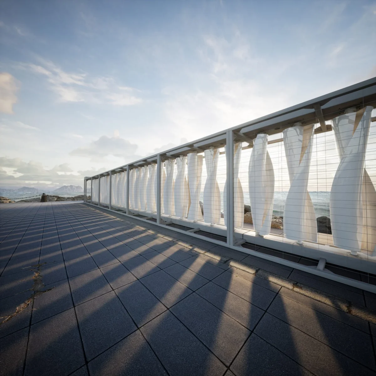 A Joe Doucet tervező által 2021-ben bemutatott koncepció, a szélturbinafal az elmúlt évek során valósággá vált, bár végül az eredetitől eltérő formában testesült meg, mivel a kiinduló elképzelés a gyakorlatban túlságosan radikálisnak bizonyult. A fal a tervek szerint egészen apró miniturbinákból állt volna, amelyek dísznek is beillő látványa fontos szerepet játszott volna a berendezés kialakítása szempontjából, mivel a falat nem csak energiatermelési eszköznek, hanem műalkotásnak is szánta a tervezője.