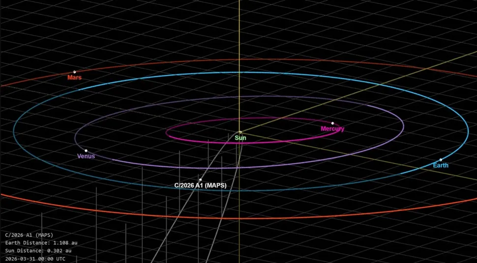 Egy teljesen frissen felfedezett üstökös, a C/2026 A1 (MAPS) alaposan felkeltette a csillagászok figyelmét. Az égitest egy nagyon hosszú elliptikus pályán mozog, és április 4-én kevesebb mint 160 000 km-re közelíti meg a Nap felszínét.