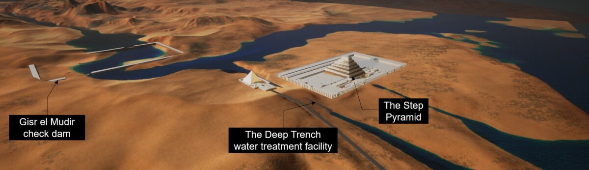 “A nemrég alapított Paleotechnic kutatóintézet és több nemzeti laboratórium (INRAE, Orléans-i Egyetem) együttműködésének eredményeként felfedeztek egy gátat, egy vízkezelő létesítményt és egy hidraulikus felvonót, amelyek lehetővé tették a szakkarai lépcsős piramis megépítését.