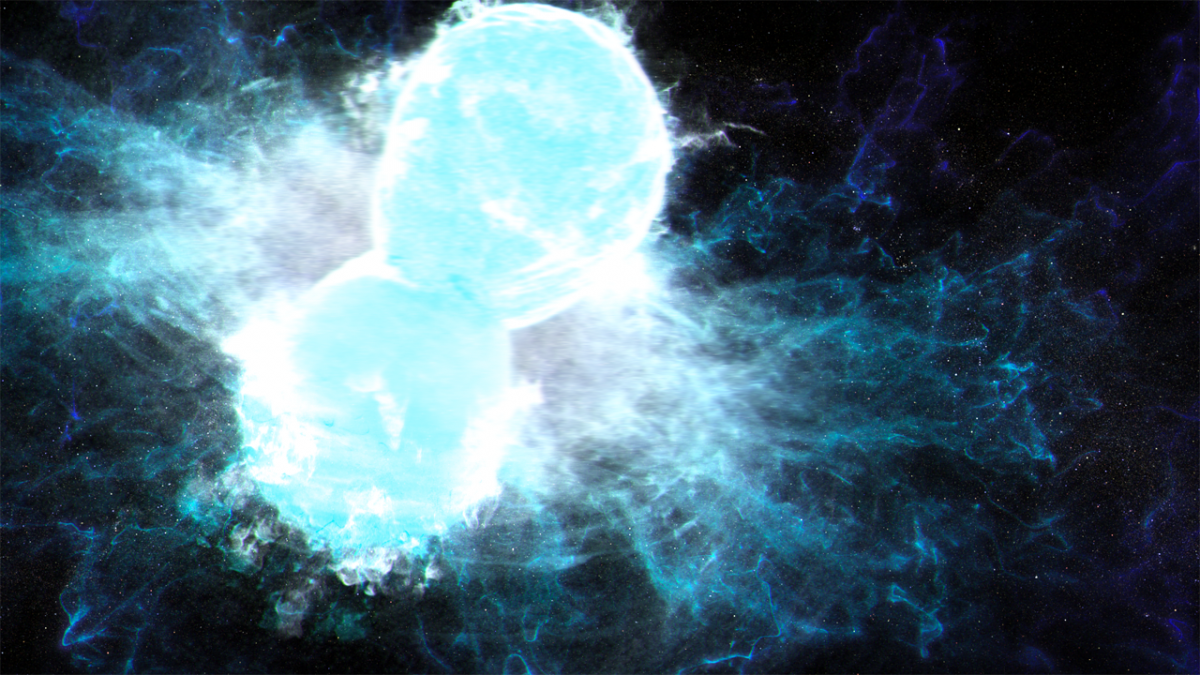 A neutroncsillagok rendkívül nagy sűrűségű és erős gravitációs mezővel rendelkező égitestek, amelyek főként szabad neutronokból épülnek fel és már egy 20 kilométer átmérőjű neutroncsillag is lehet akár a Nappal egyező tömegű. Mielőtt egy bináris rendszer két neutroncsillaga összeütközésbe kerülne, elkezdenek villámgyorsan körözni egymás körül, ekkor a sebességük elérheti a másodpercenként 100 (egymás körüli) fordulatot is. Mikor végül egybeolvadnak, hatalmas robbanás keletkezik és ennek során a másodperc törtrészéig hipermasszív neutroncsillaggá alakulnak, majd fekete lyukká omlanak össze. A kilonóva robbanás radioaktív tűzlabda születését eredményezi, aminek alakja a korábbi elméletek szerint asszimetrikus és elnyújtott, lapított formájú, de újabb számítások alapján kiderült, hogy a teóriák nem állják meg a helyüket: a robbanás során közel tökéletes gömbformában lövell ki az anyag.