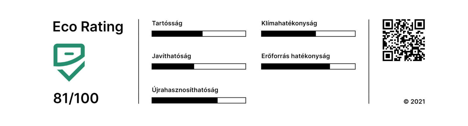 Ez az eszköz teljes életciklusa során kibocsátott üvegházhatású gázok mennyiségét jelző érték. Minél jobb a pontszám, annál kisebb az éghajlatra gyakorolt hatás.
