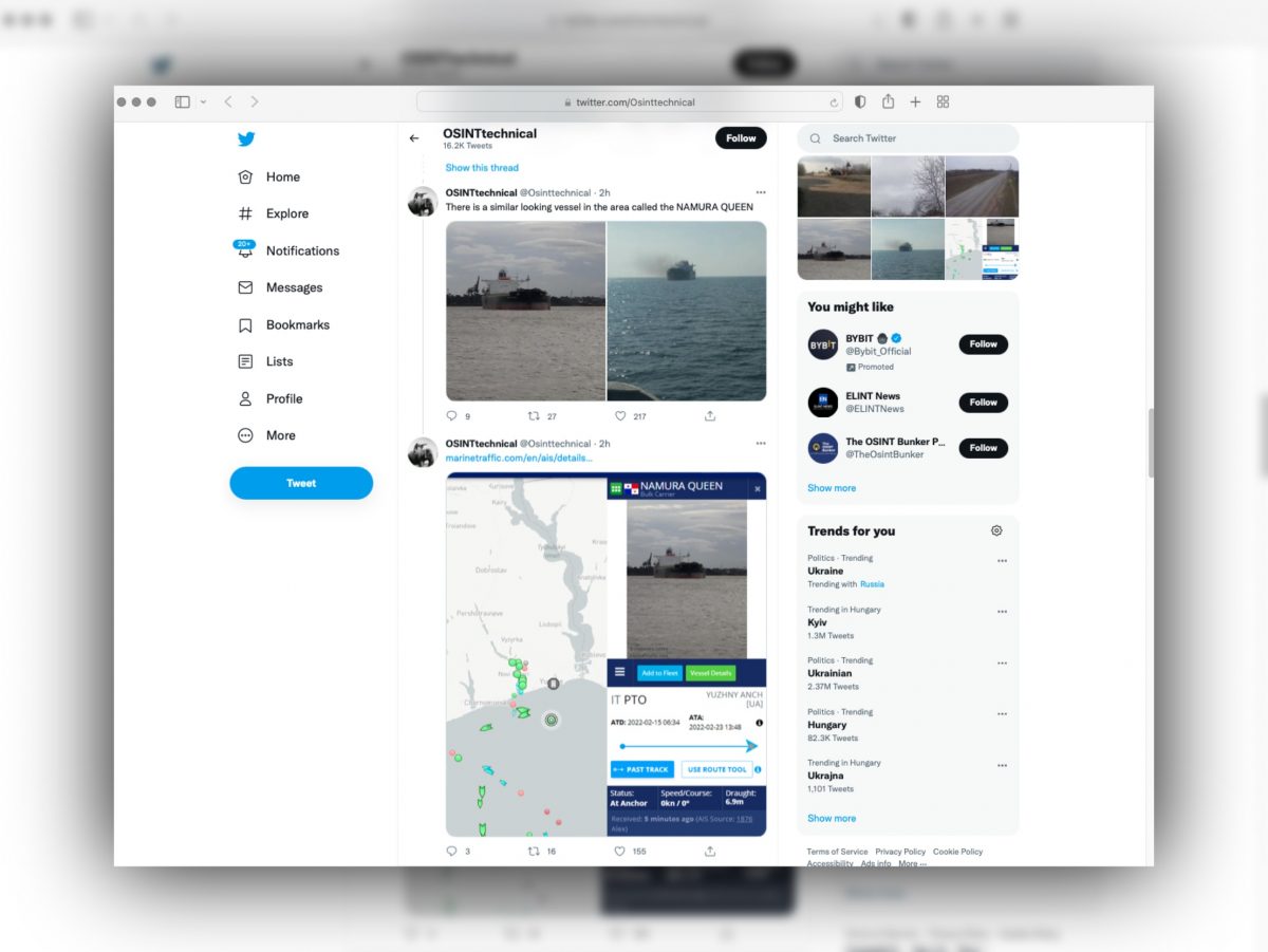 A Financial Times-nak nyilatkozva az Egyesült Királyság titkosszolgálatának korábbi vezetője, Sir Alex Younger is azt mondta, hogy "a nyugati kormányok sokat tanultak az információs hadviselésről a nyílt forrású hírszerzési közösségtől", majd hozzátette, hogy így jobban lehet ellenőrizni, hogy valóban az történik-e, amiről a politikusok, a szolgálatok beszélnek. Cikkünk írásakor az egyik ilyen fiók, az @Osinttechnical például egy ukrán Mi-24-es helikopter támadását rögzítő videót, a hírek szerint eltalált román tankerhajóról készült felvételeket, illetve az Észtországba, Litvániába és Romániába vezényelt amerikai F-35-ösök fotóit osztotta meg.