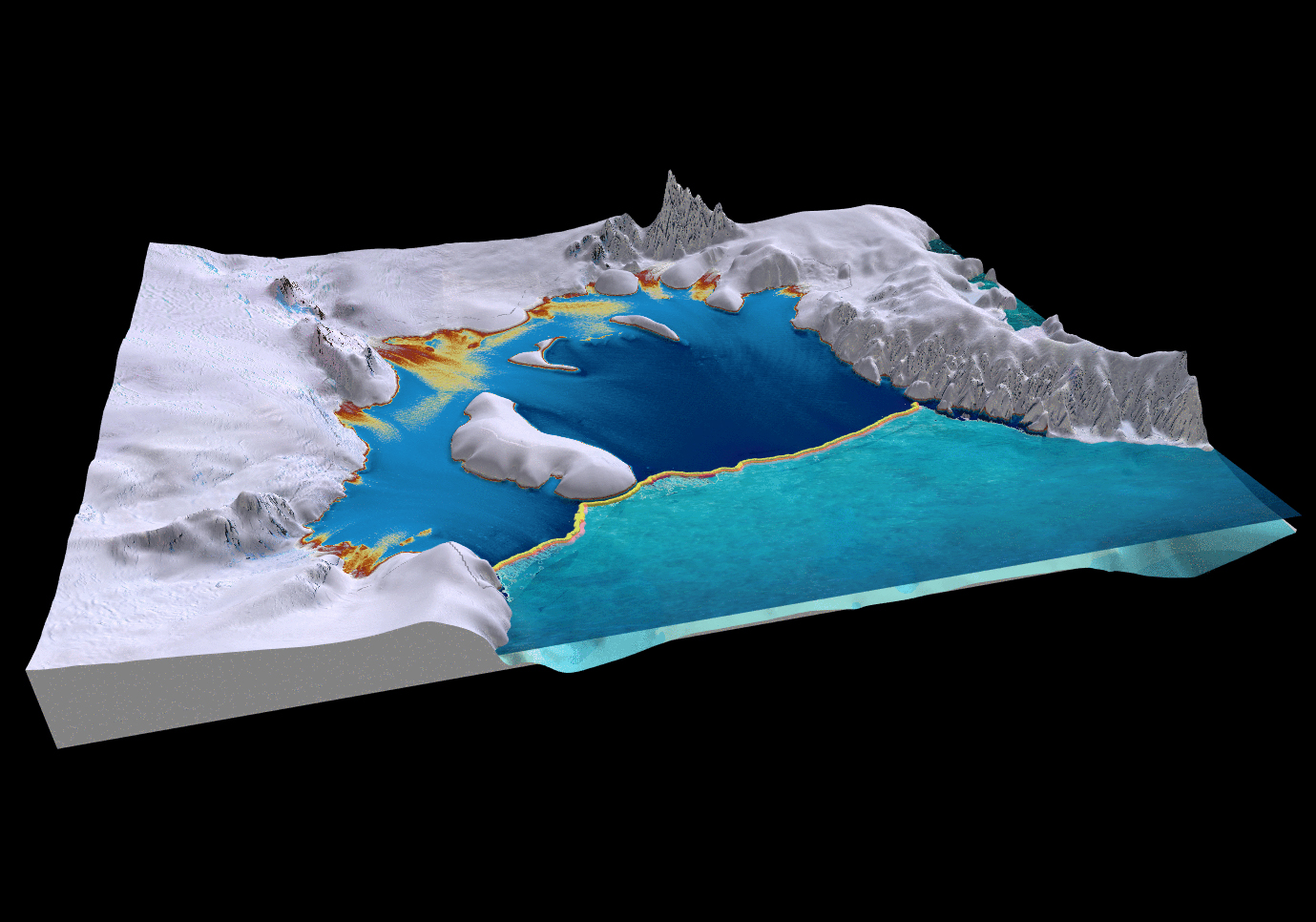 Az Európai Űrügynökség (ESA) Copernicus Sentinel-1 műholdja készítette a felvételt az A-68 jelzésű óriás jégtábláról, ami három éve vált le az Antarktisztól, a Larsen-C selfjégről.
